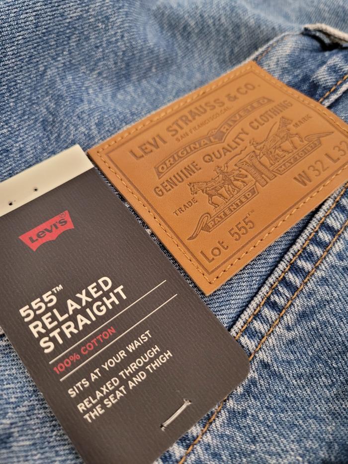 릴렉스드 핏으로 편안하게 착용 가능한 555 릴렉스드핏 진입니다. 면 100% 소재로 튼튼하며 일자핏으로 편안합니다.