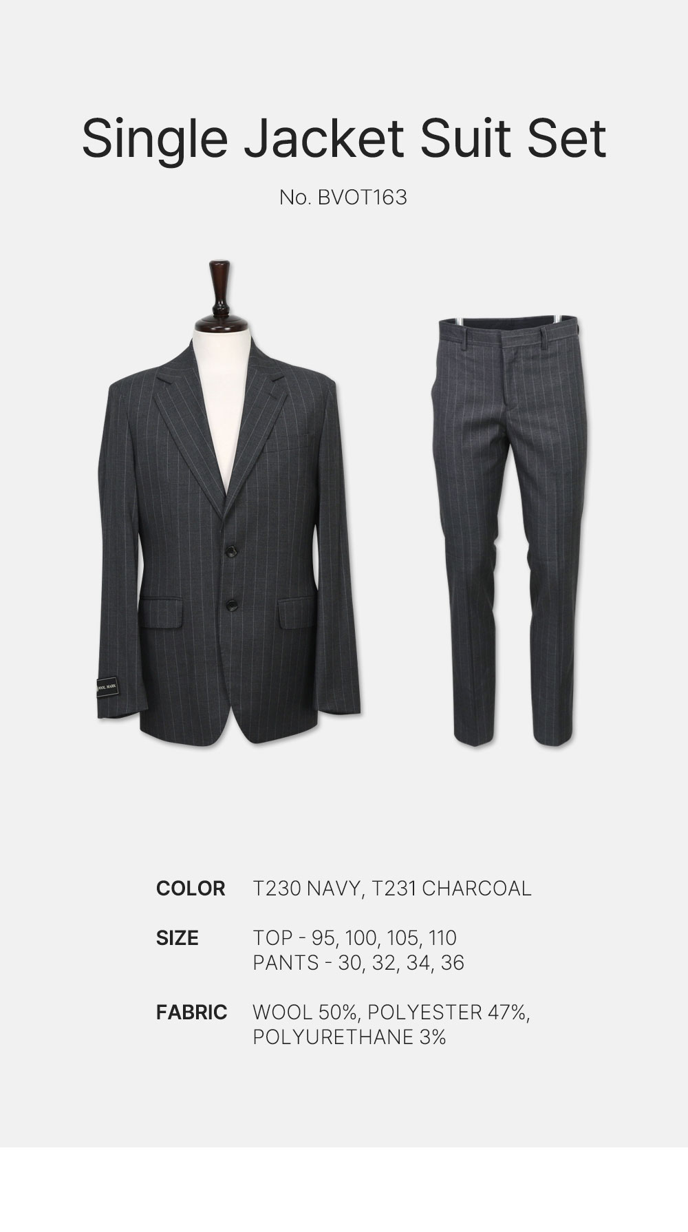 빌리버스빌리버스 남성 간절기 울블렌드 싱글자켓 정장 스트라이프 투피스 세트 BVOT16