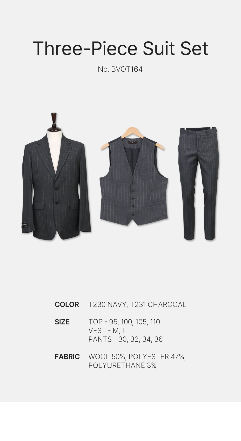 빌리버스빌리버스 남성 간절기 울블렌드 싱글자켓 정장 스트라이프 쓰리피스 세트 BVOT1