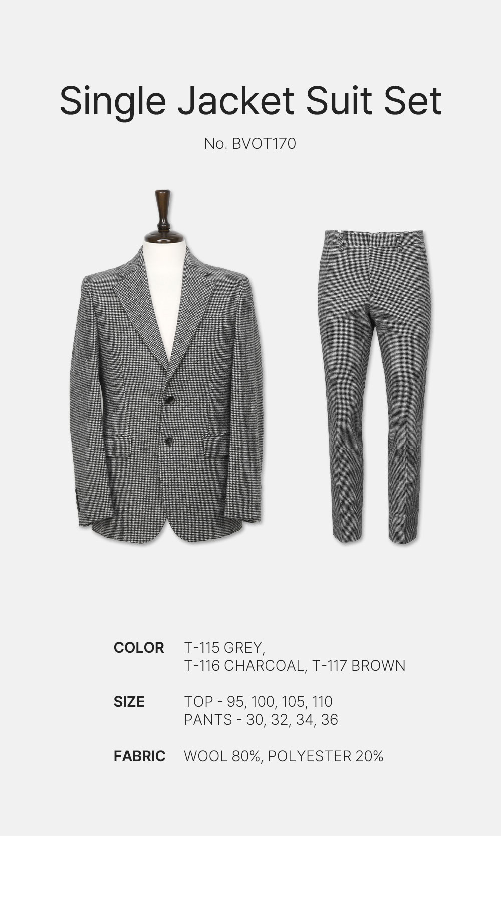 빌리버스빌리버스 남자 겨울 모던 하운드투스 싱글 자켓 정장 투피스 세트 BVOT170