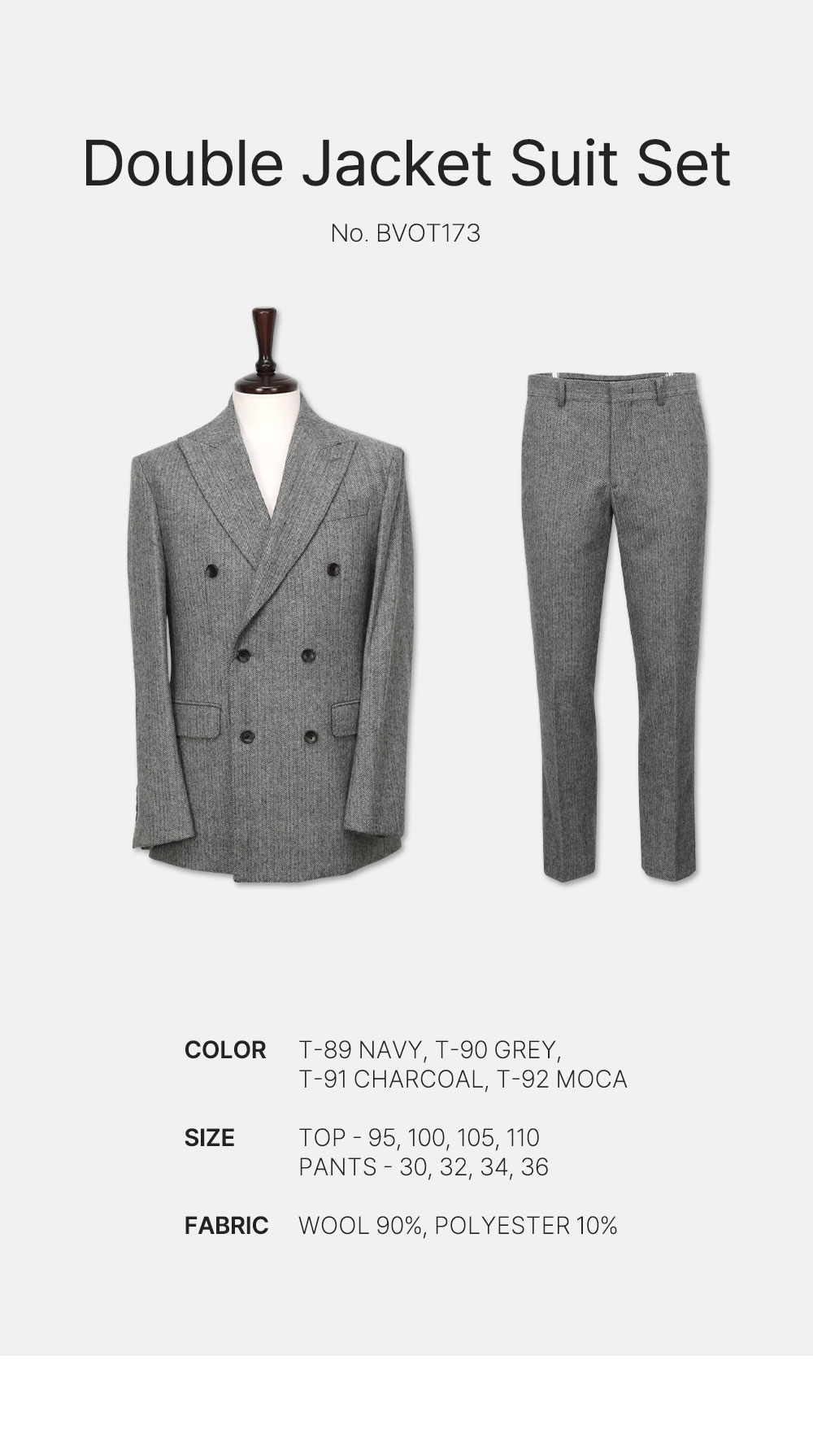 빌리버스빌리버스 남성 데일리 투피스 세트 헤링본 패턴 울블렌드 더블 자켓 정장 BVOT