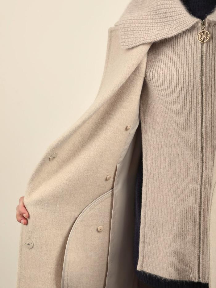 니트라이너가 포인트인 롱기장핸드메이드 코트입니다 돌먼소매로 부드러운 어깨라인이 여성스럽고 여유로운 오버핏 사이즈는멋스랍게보여집니다 탈부착이가능한 니트라이너로 레이어드하듯 코디가능아며 보온에도 탁월합니다 여유로운 오버핏 으로 어떠한 데일리룩에도 걸치기싳고 기본풀오버와 와이드팬츠와도 멋스럽게 코디가능합니다