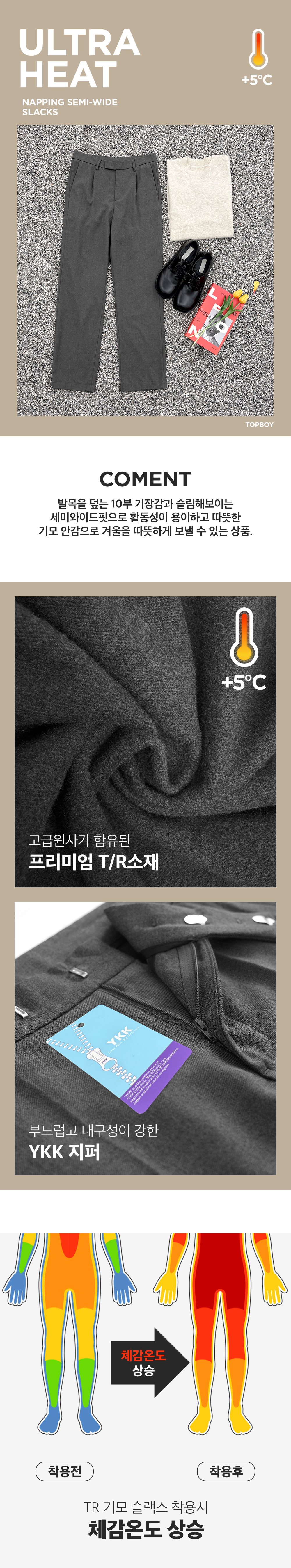 탑보이탑보이 빅사이즈 울트라 히트 기모 세미와이드 슬랙스 (SJ175)