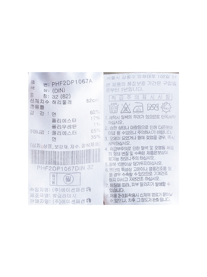 밑단둘레 | 24 | 25.5 | 27 | 28.5 | 30 |