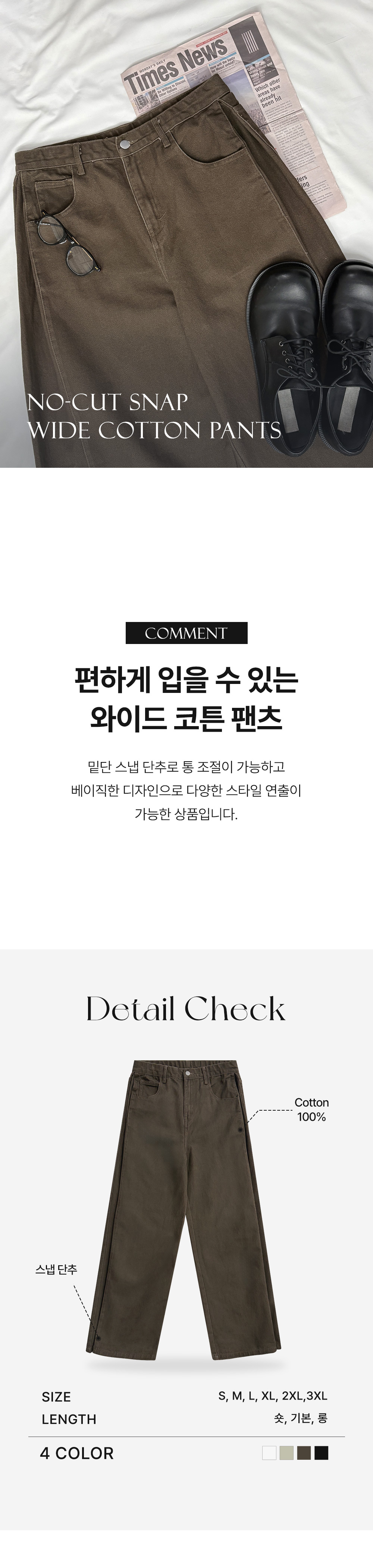 탑보이탑보이 노컷 밑단 스냅 와이드 코튼 팬츠 (LZ007)