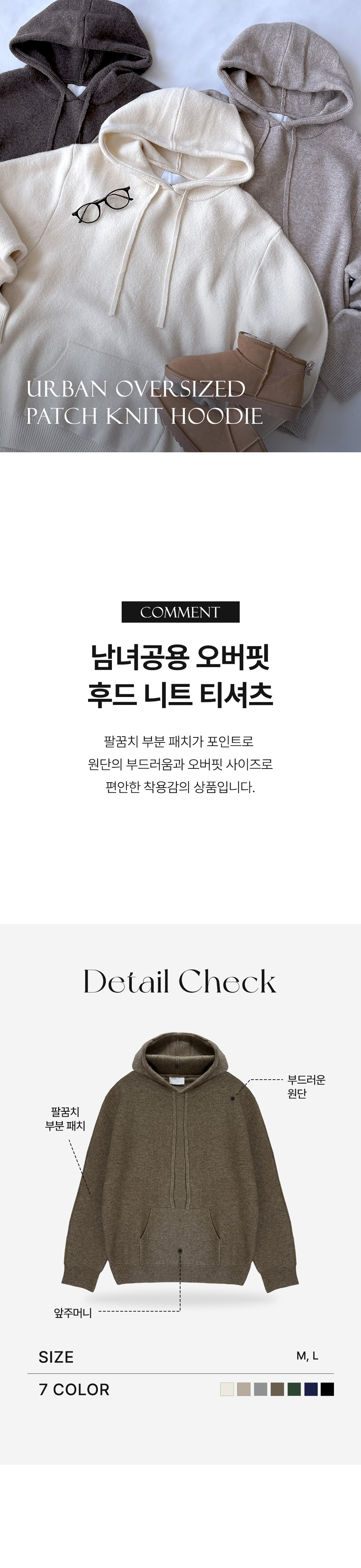 탑보이탑보이 어반 오버핏 패치 니트 후드 티셔츠 (LG001)