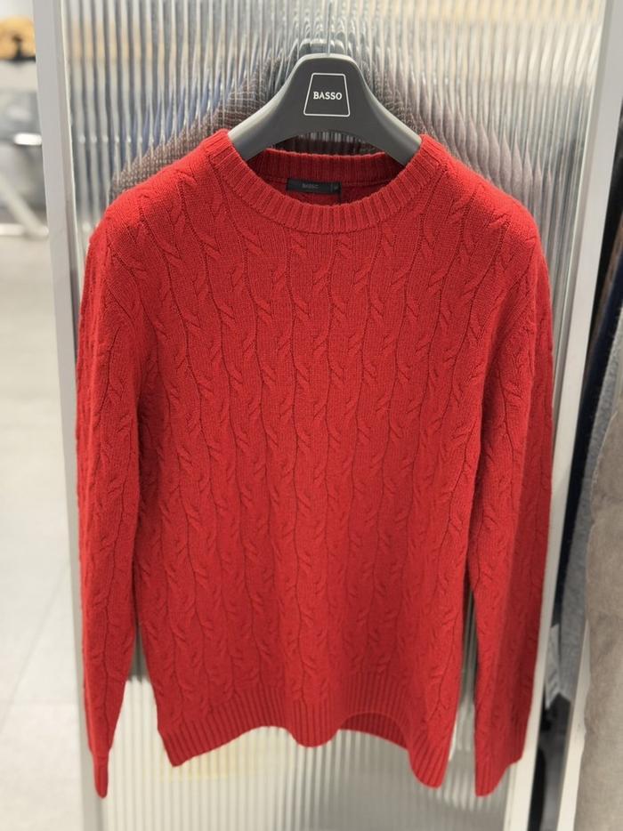 BASSO 세이브존01 모100 트위스트 케이블 라운드 니트 레드 BS-Y4WR64AIV (S43262790)
