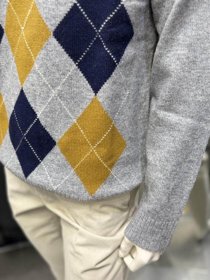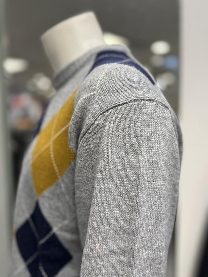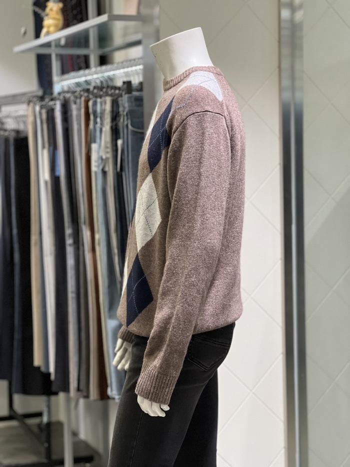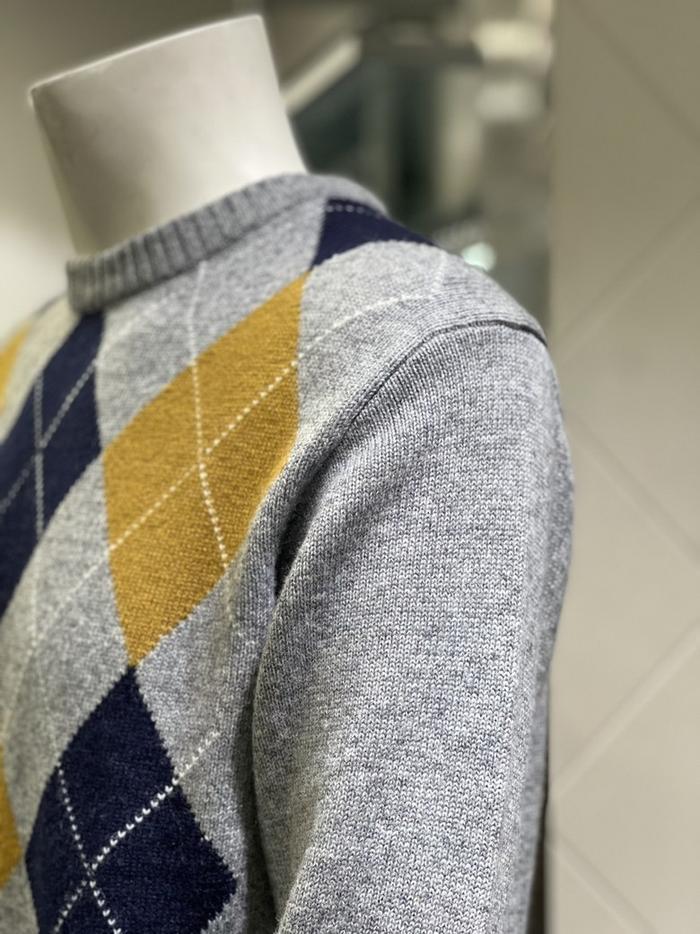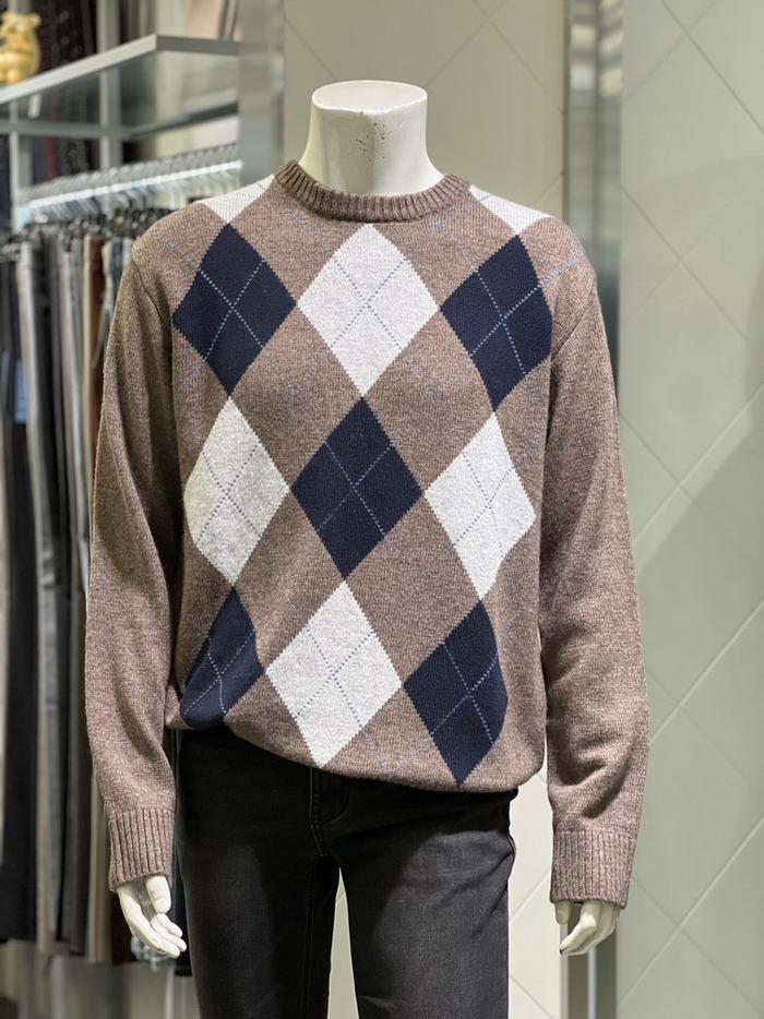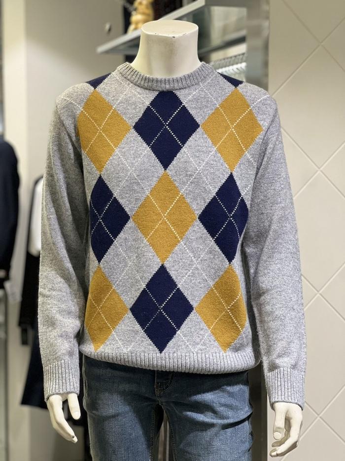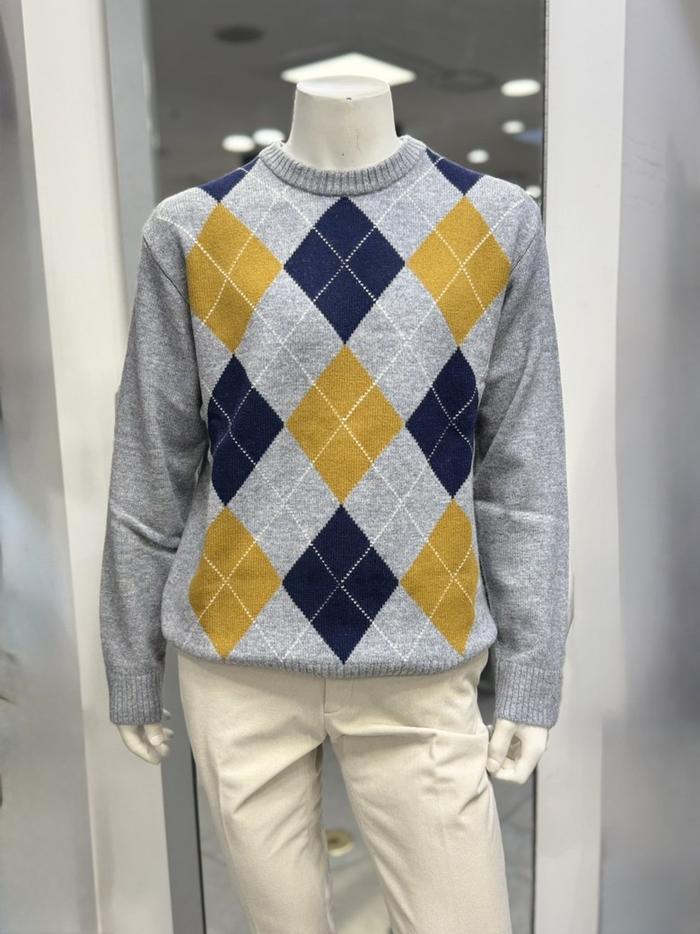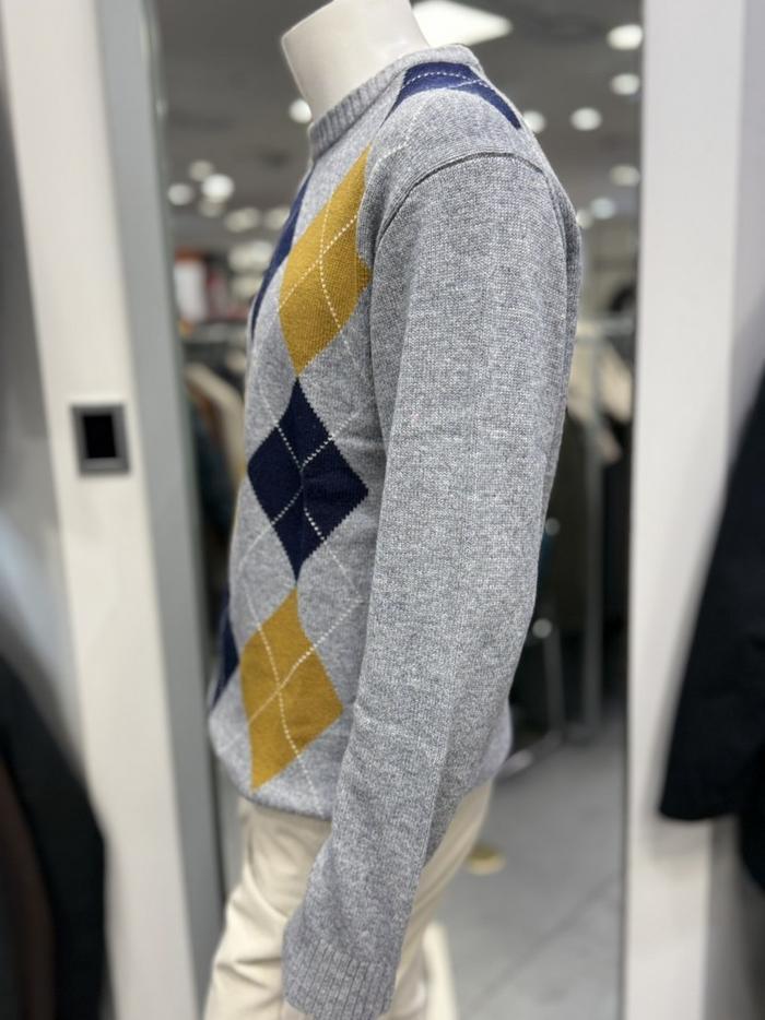 BASSO 세이브존01 그레이 아가일 패턴 울혼방 라운드 니트 (2컬러) BS-Y3WR45AGR (S43262799)