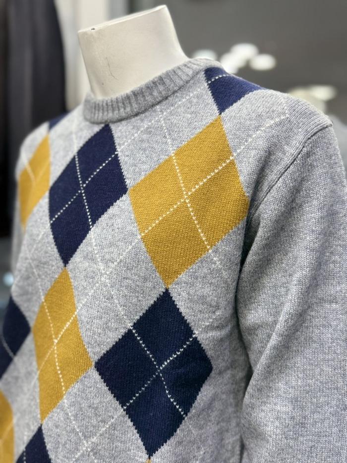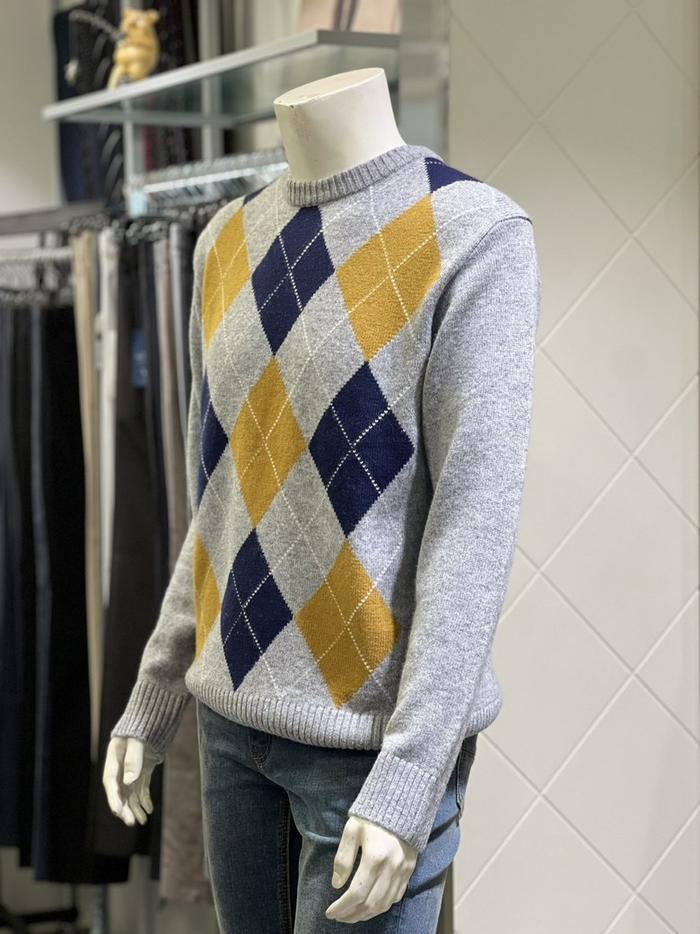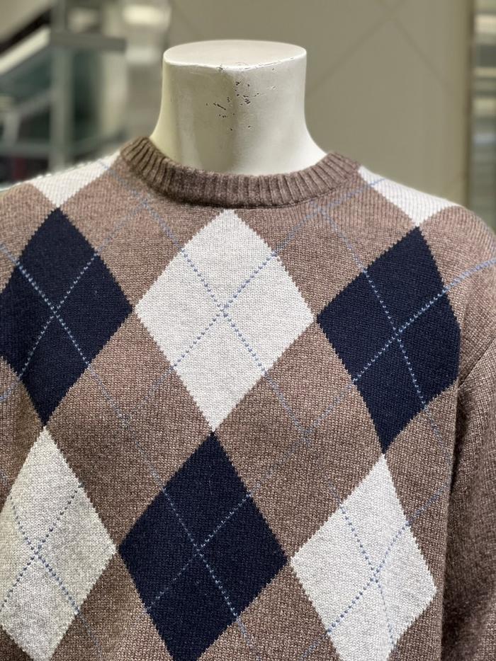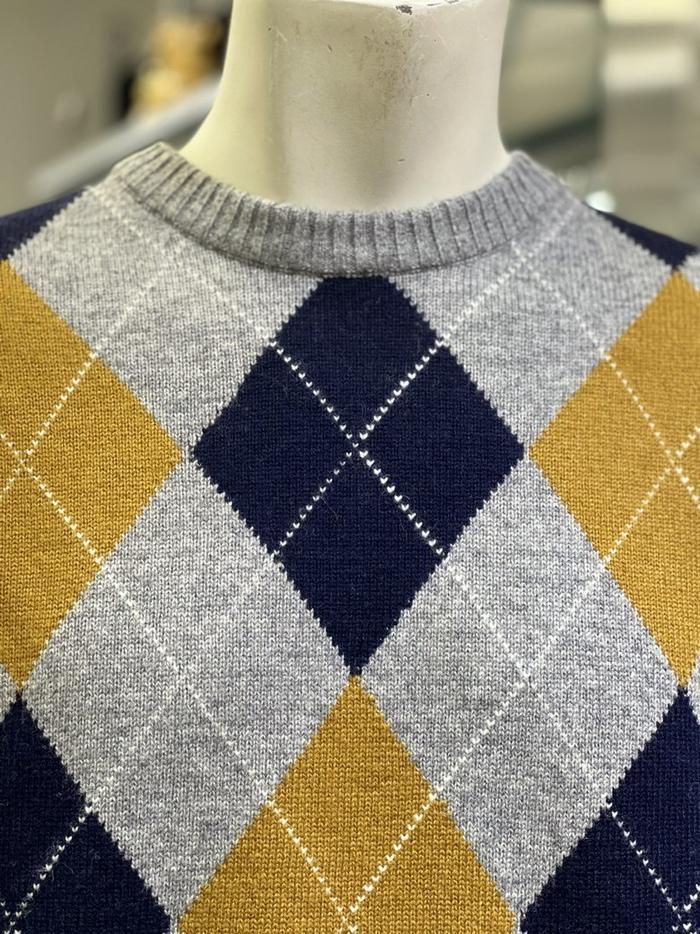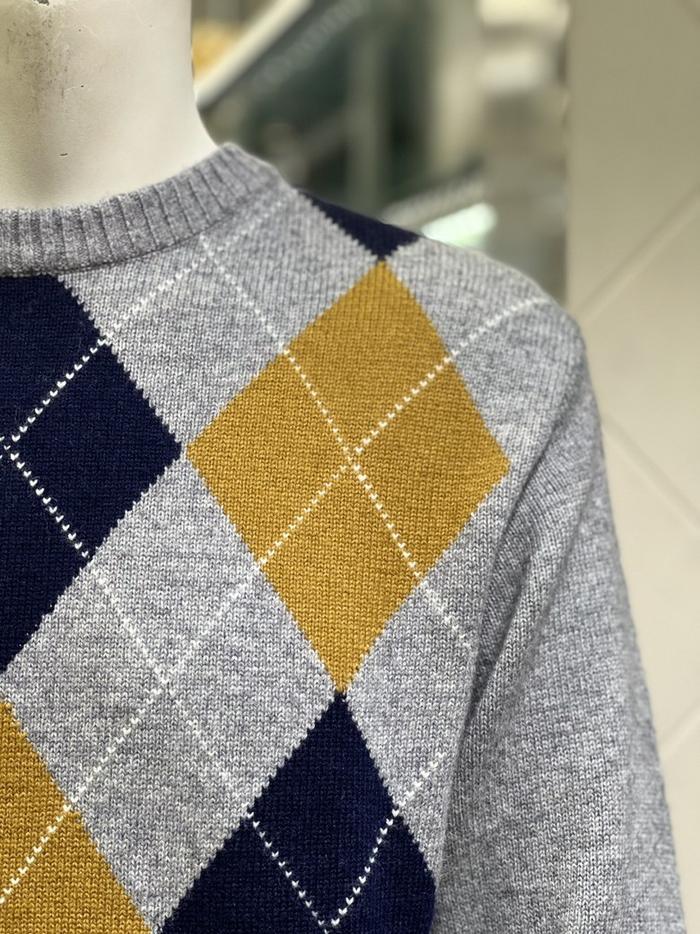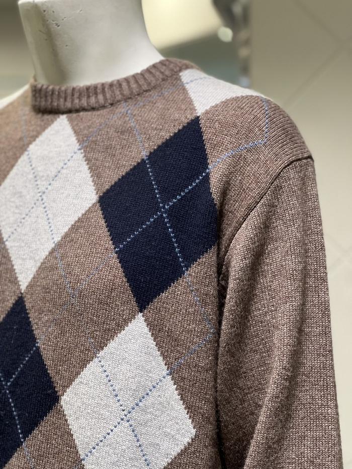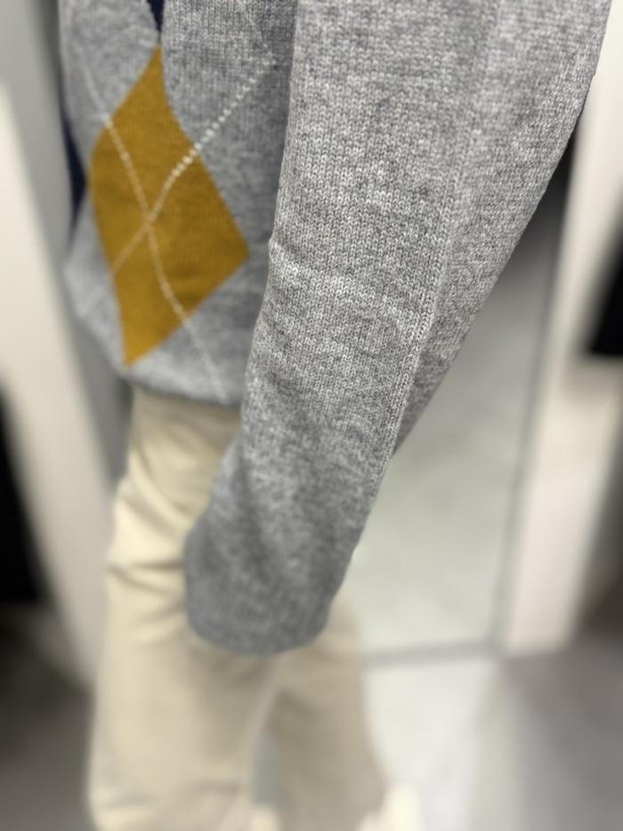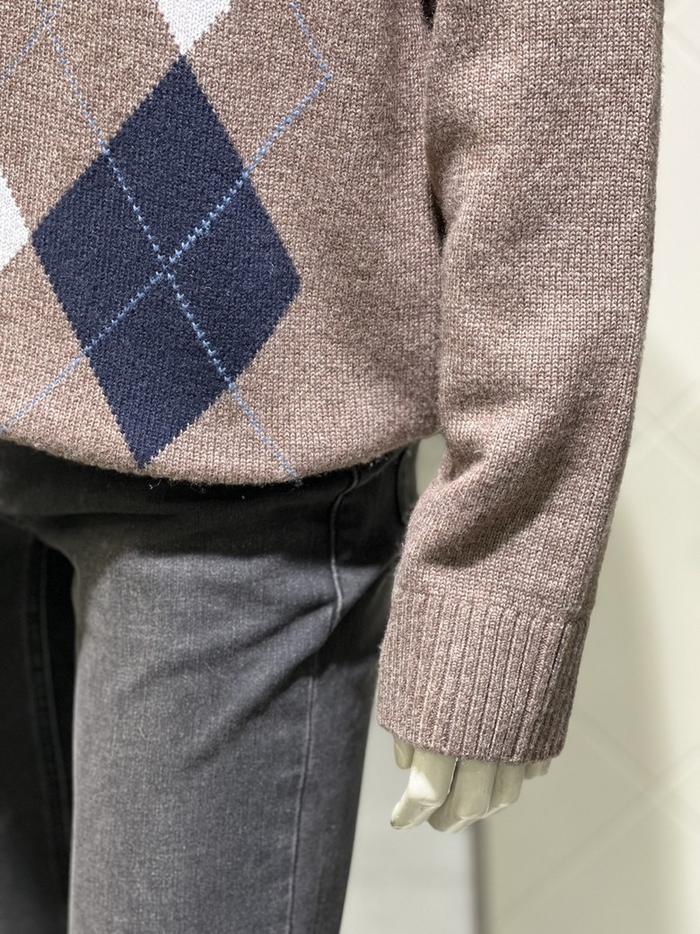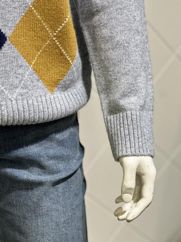 BASSO 세이브존01 그레이 아가일 패턴 울혼방 라운드 니트 (2컬러) BS-Y3WR45AGR (S43262799)