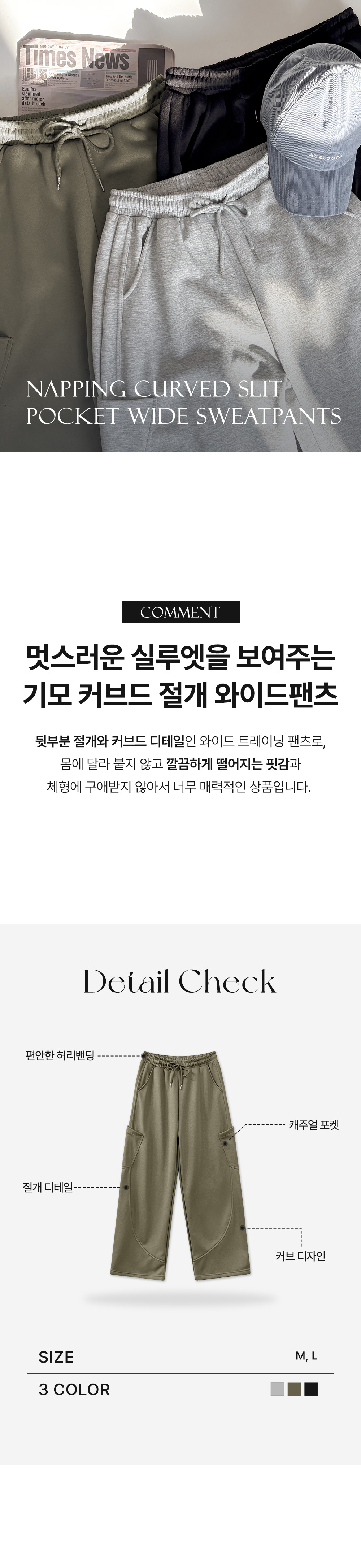 탑보이탑보이 기모 커브드 절개 포켓 와이드 트레이닝 팬츠 (LC161)