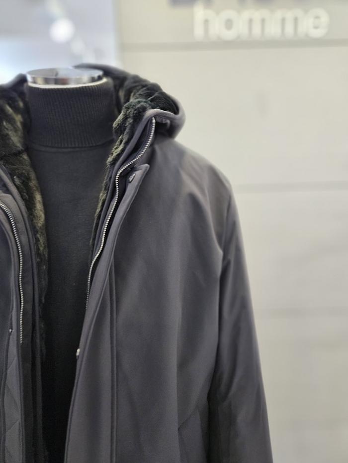 바쏘옴므 세이브존03 바쏘옴므 25F/W 블랙 후드 위즐FUR SIBERIAN 구스 롱 점퍼 (S43389517)