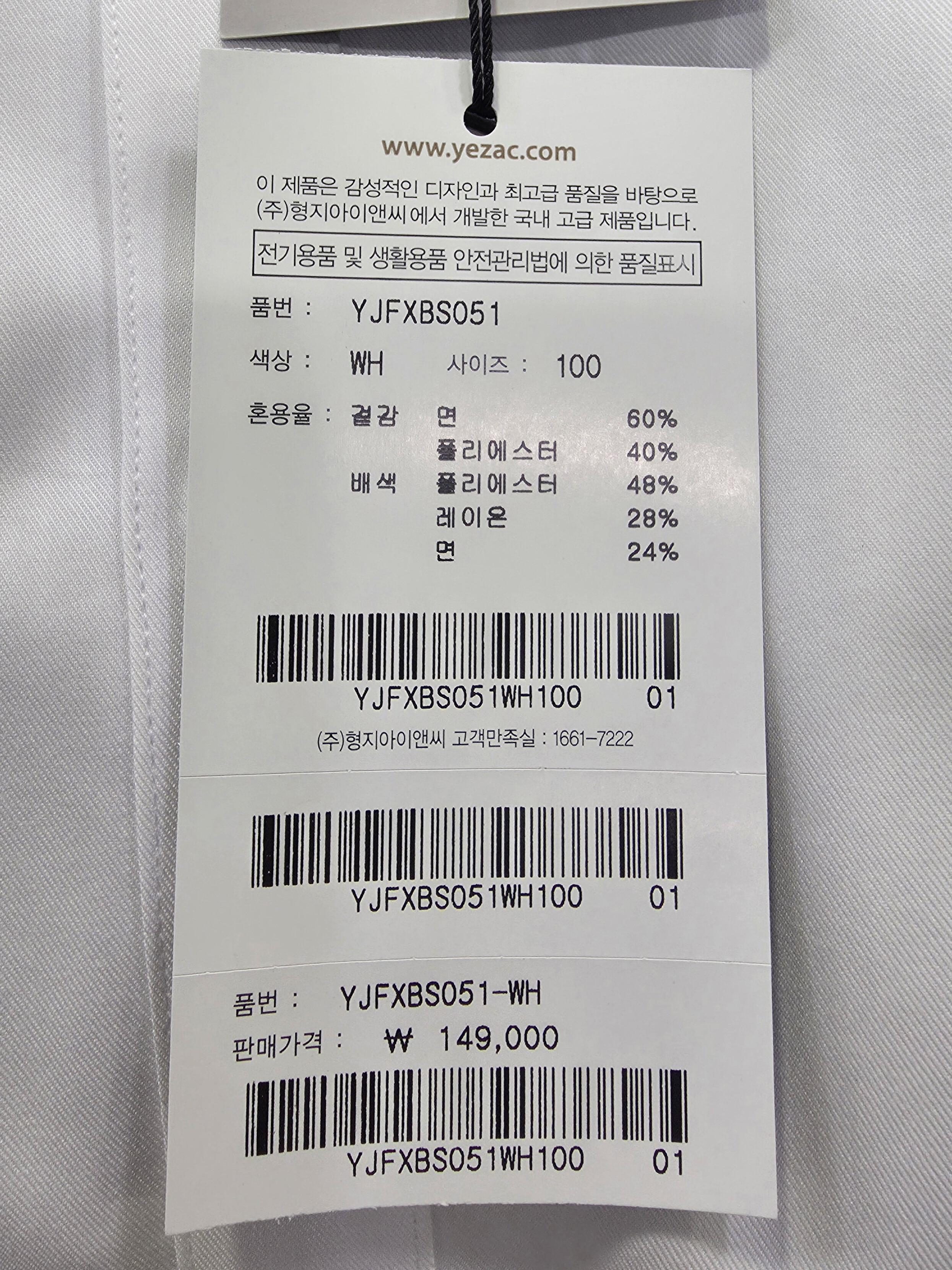 예작예작 화이트 TC면혼방 슬림핏셔츠 YJFXBS051WH (P003731287)