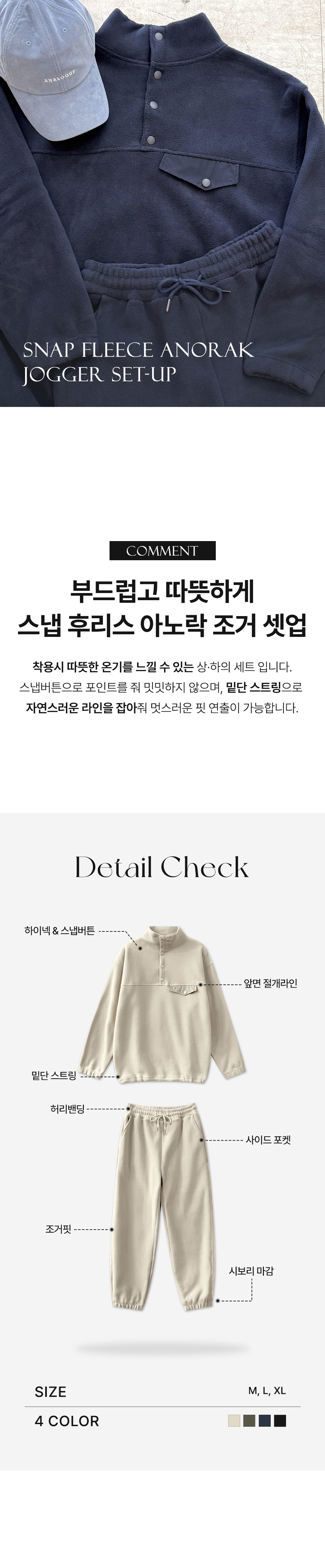 탑보이탑보이 스냅 후리스 아노락 조거 셋업 (LC167)
