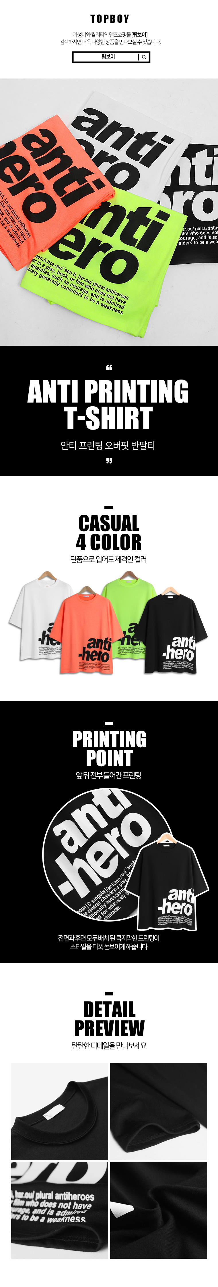 탑보이탑보이 안티 프린팅 오버핏 반팔티 (DVN011)