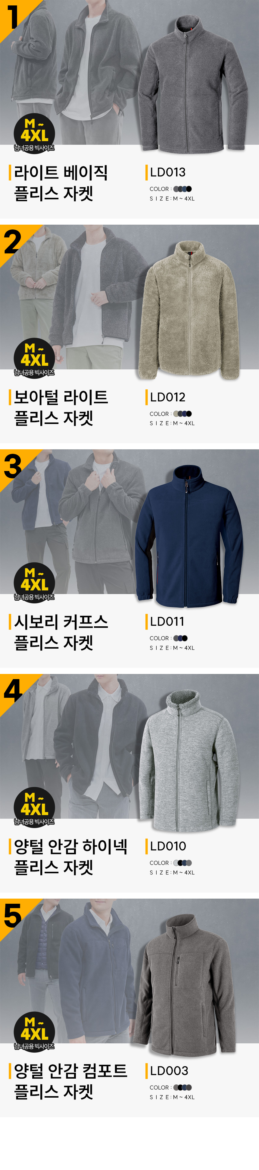 탑보이탑보이 님녀공용 빅사이즈 베이직 양털 플리스 자켓 5종 택1 (TBS_1158