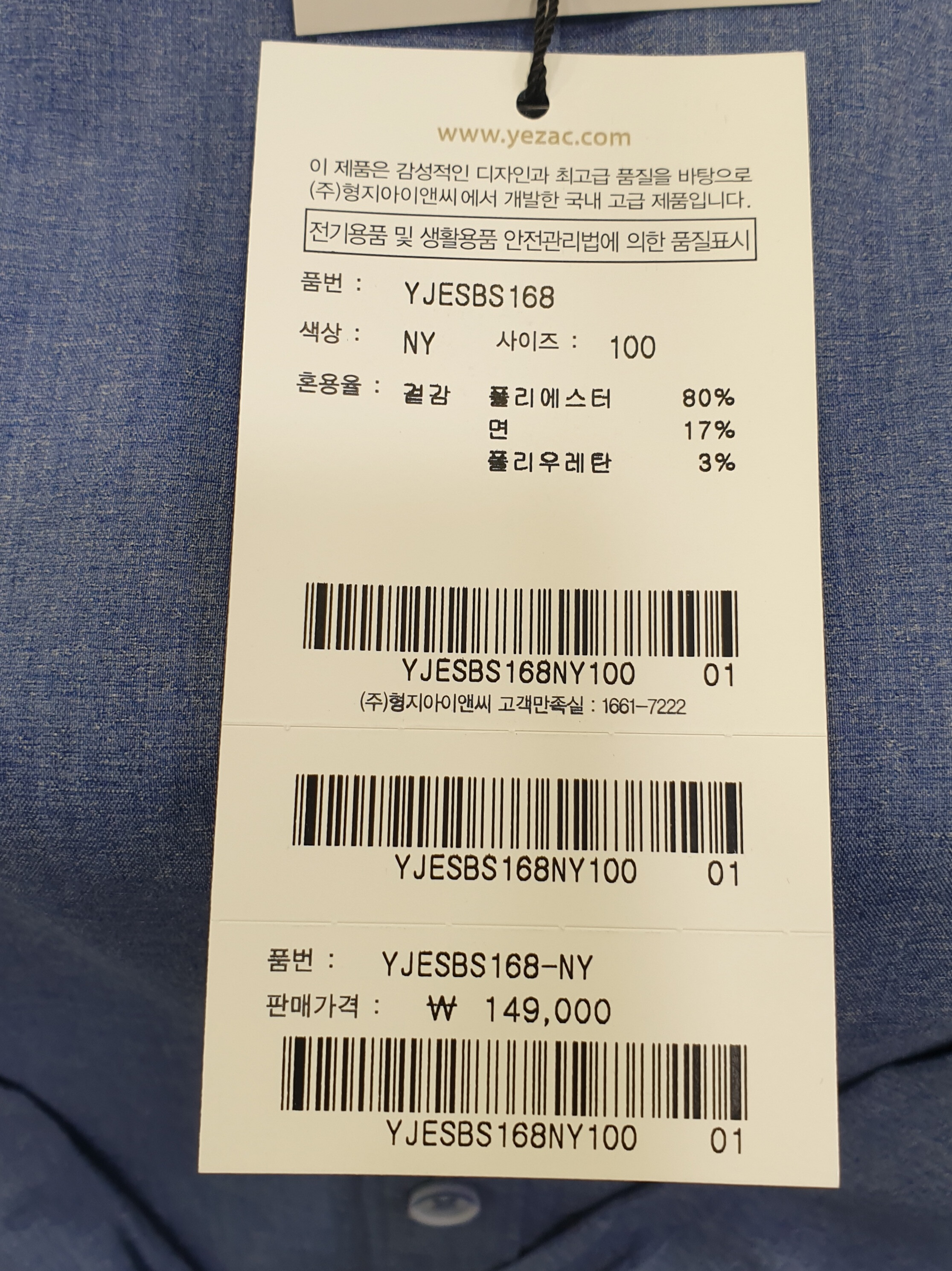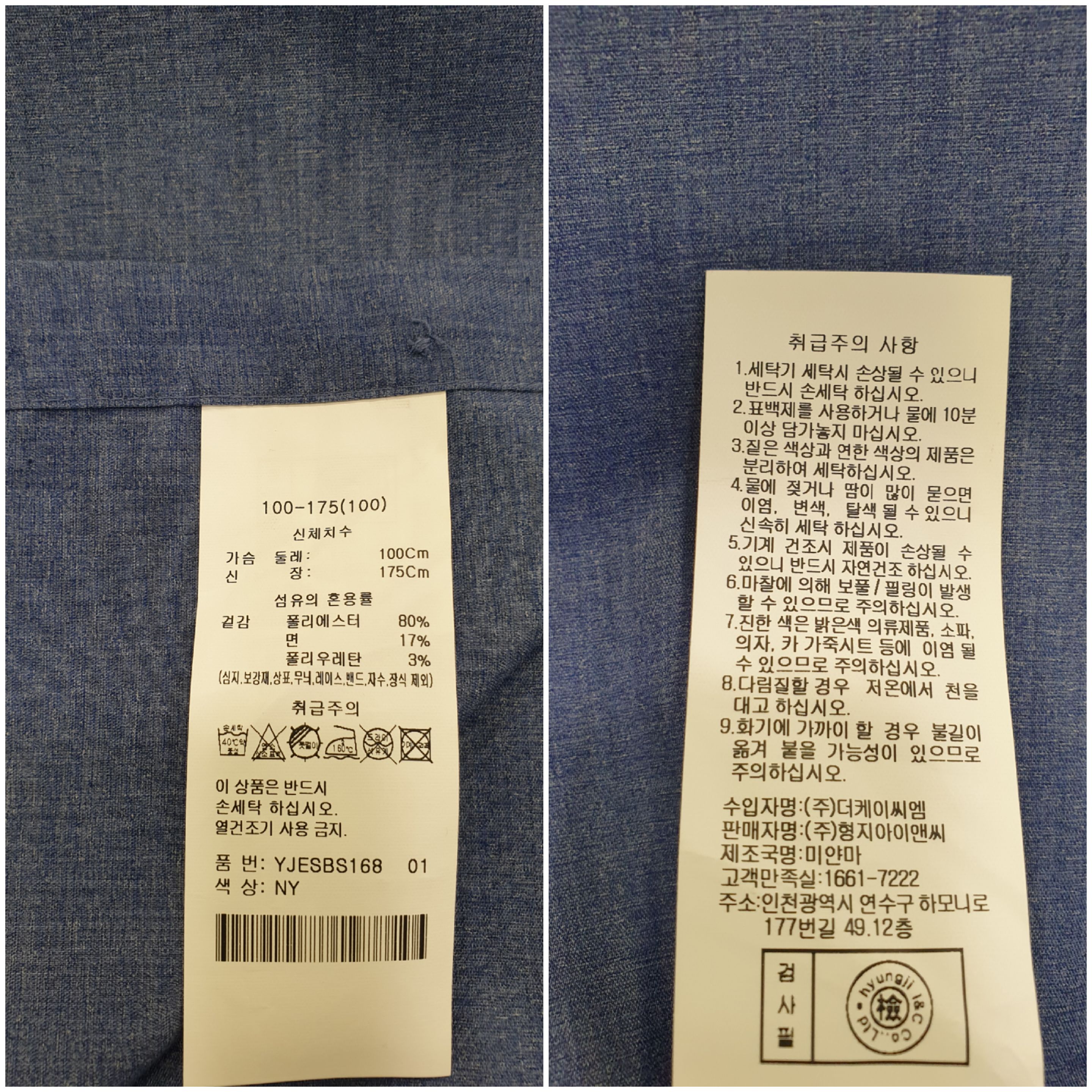 예작예작 카치온 면혼방 스판 카_라스냅버튼 슬림핏셔츠 YJESBS168NY (P00