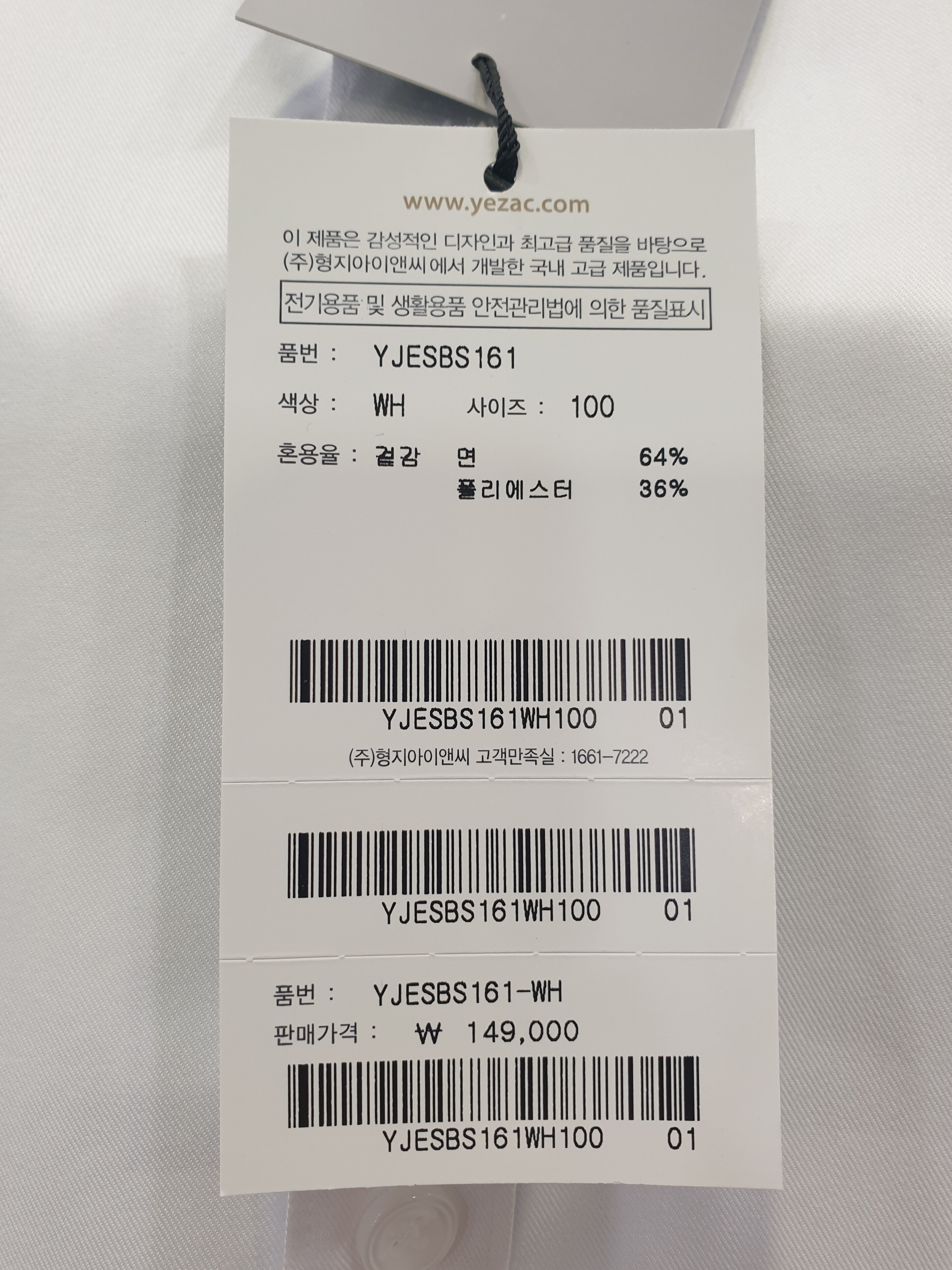 예작예작 화이트 면혼방 솔리드 슬림핏셔츠 YJESBS161WH (P00346262