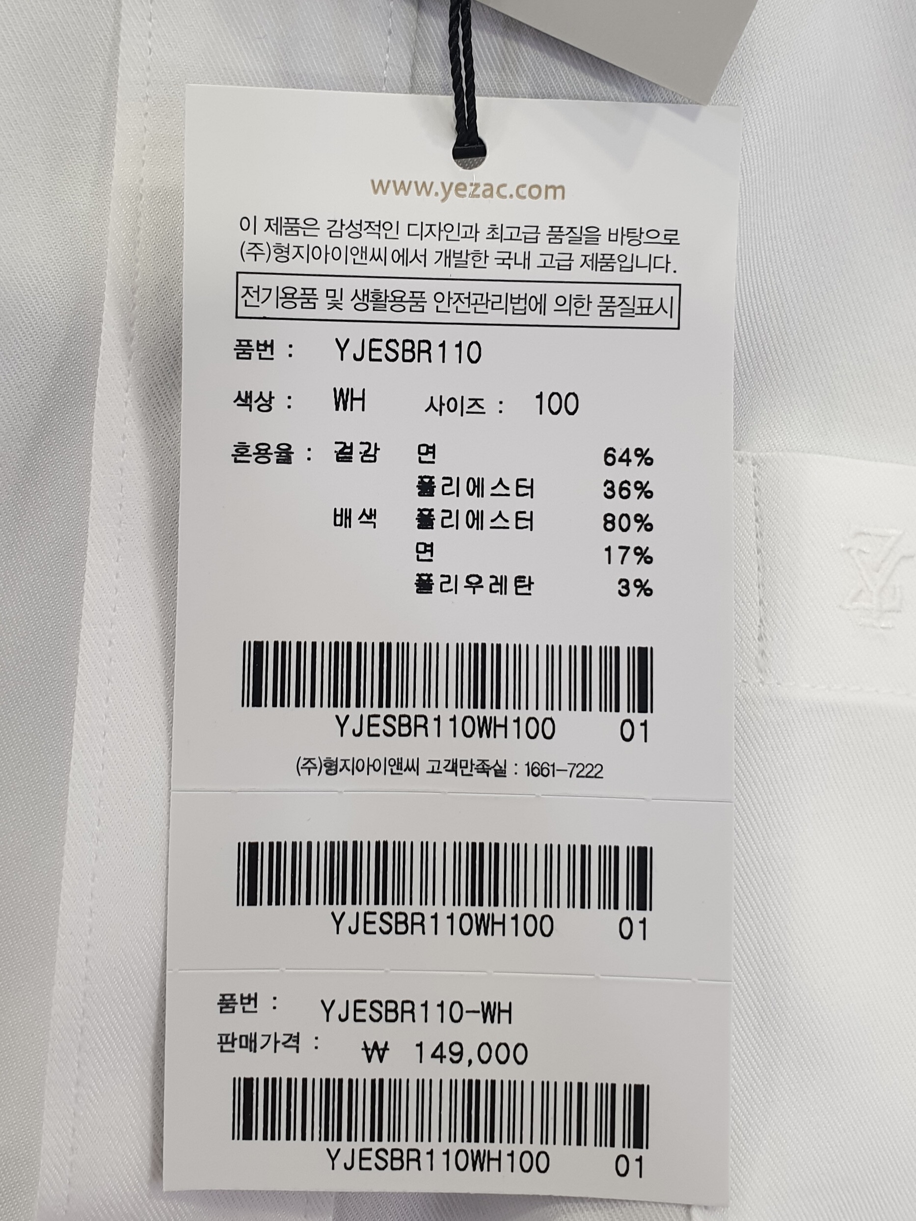 예작예작 화이트 면혼방 솔리드 일반핏셔츠 YJESBR110WH (P00346101
