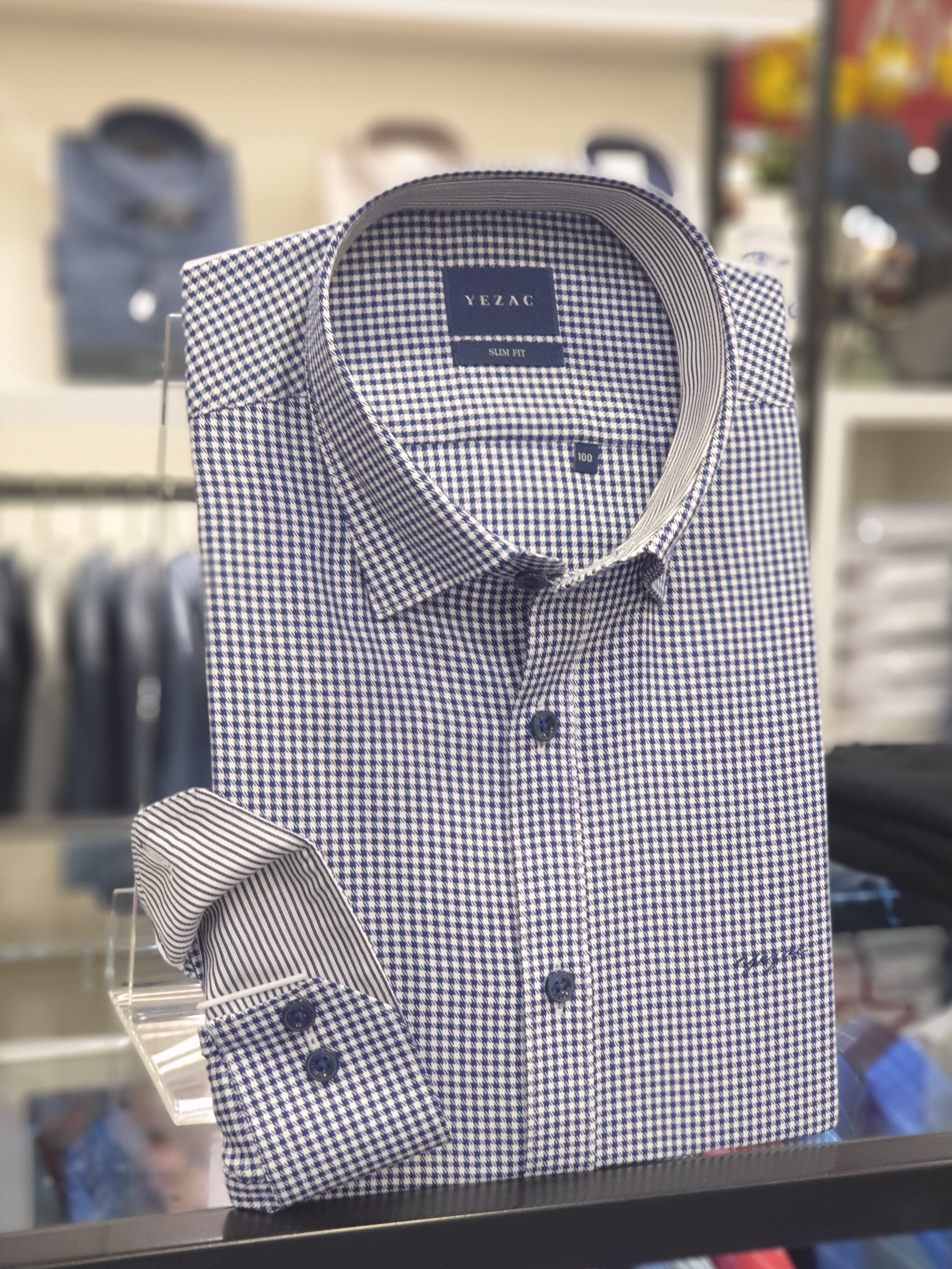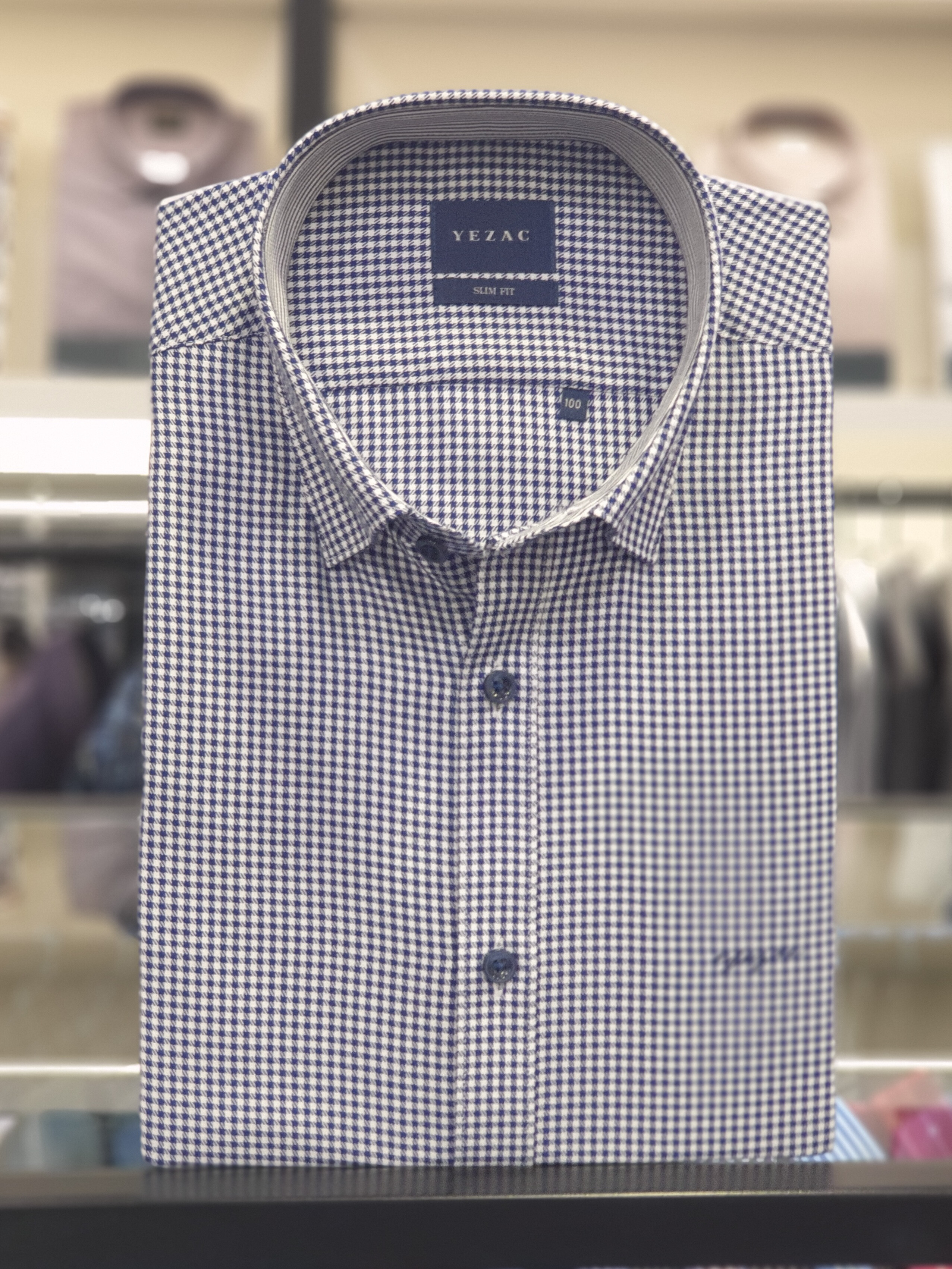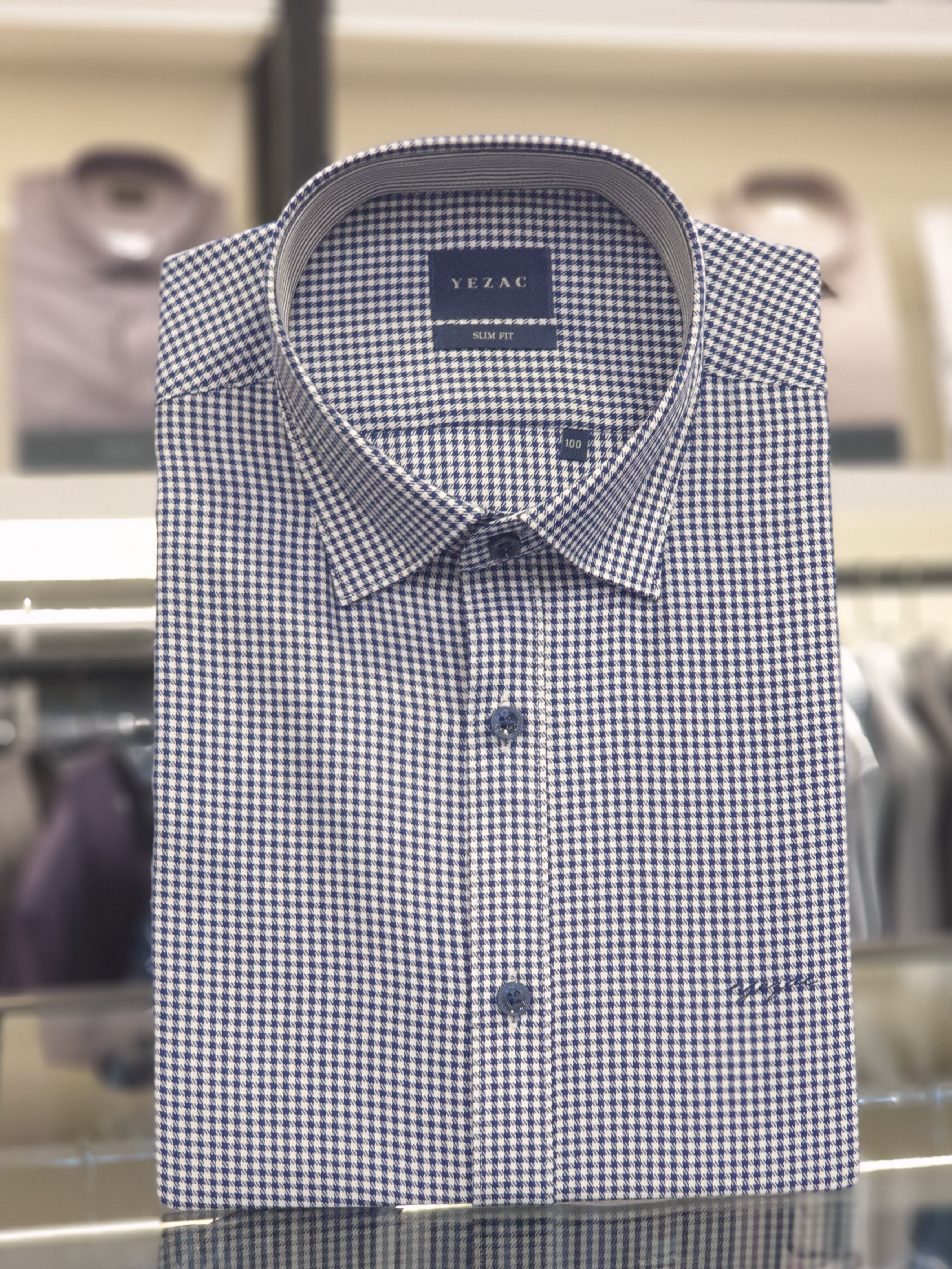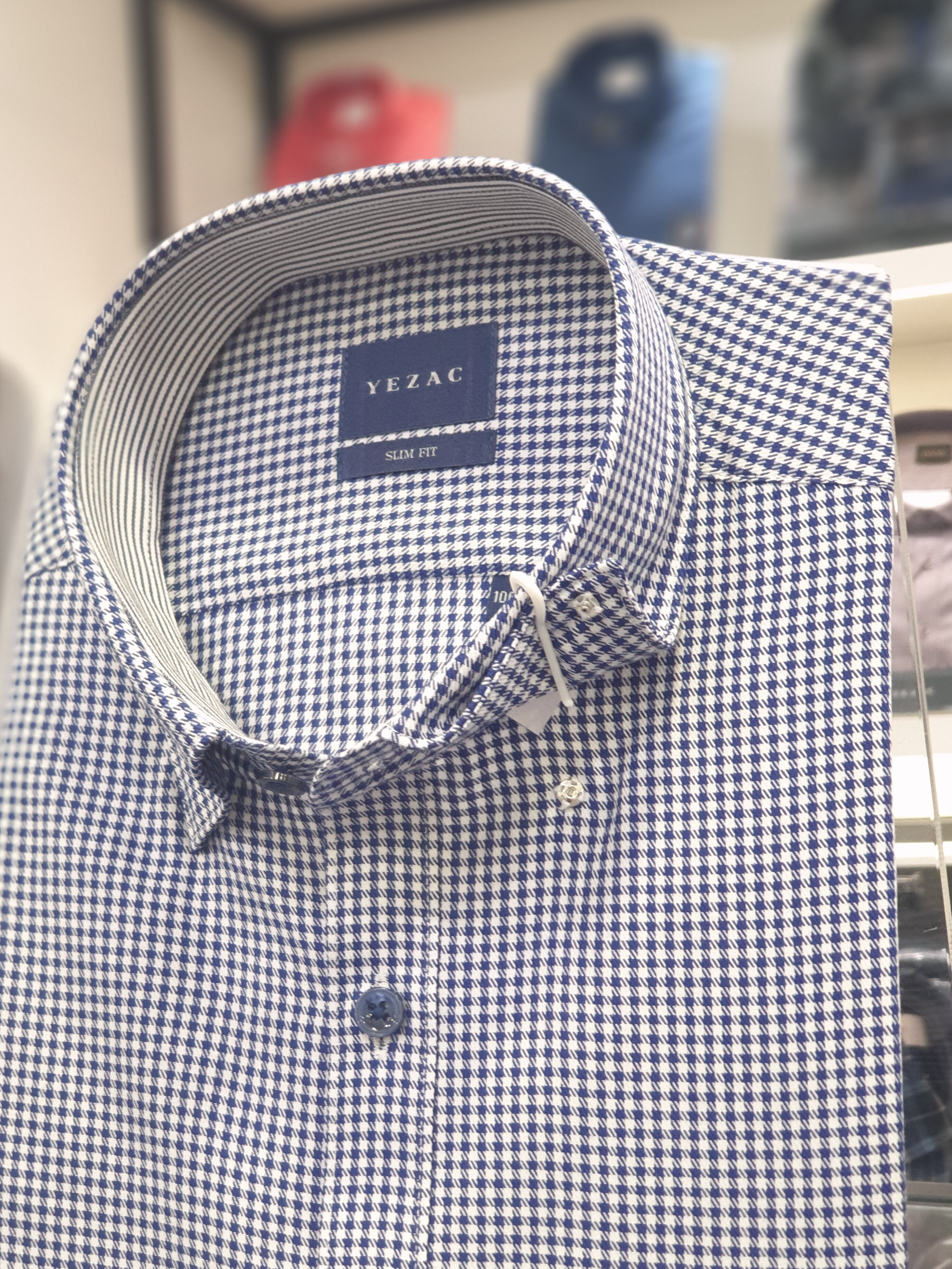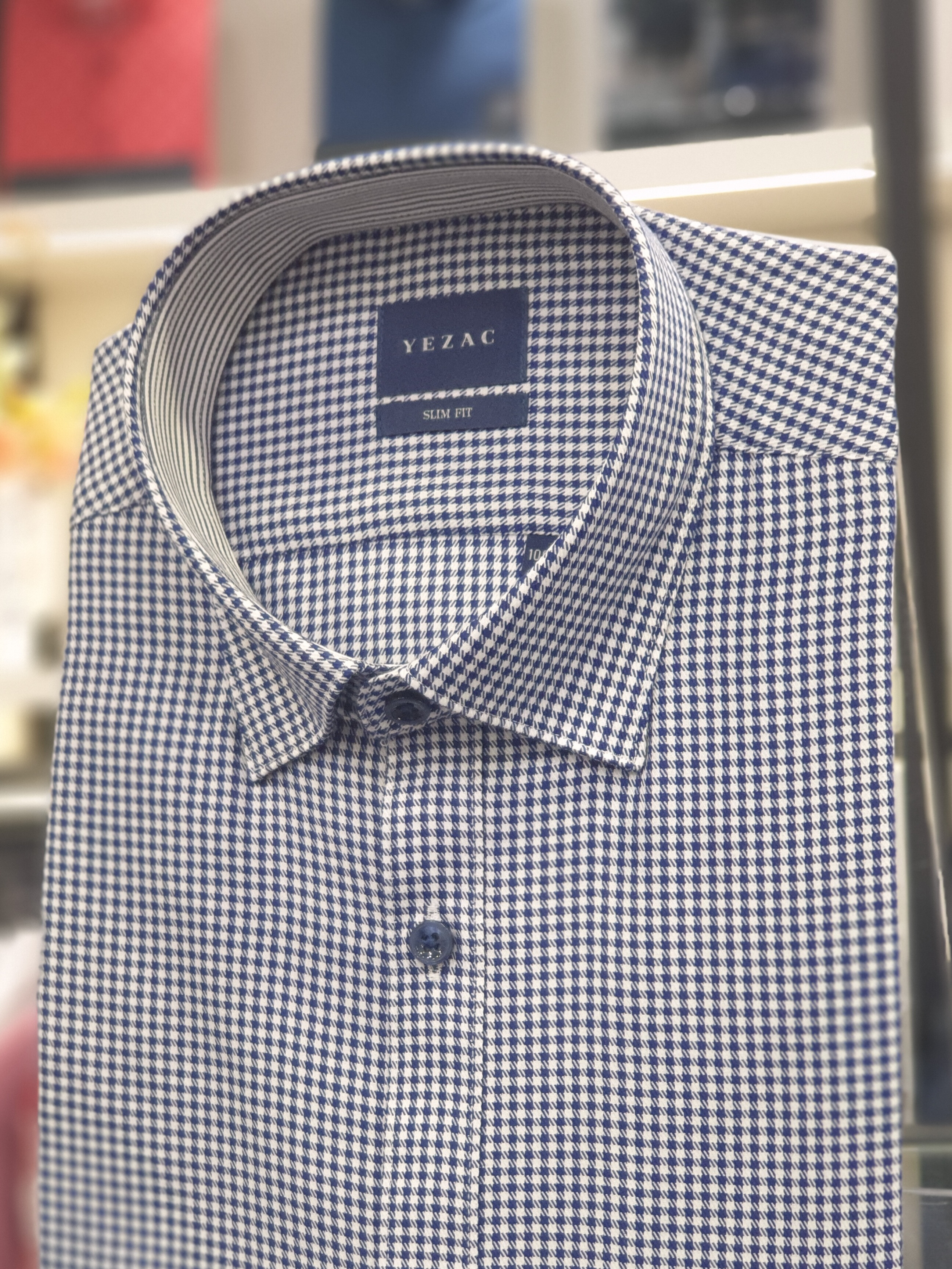 면혼방 잔체크 카라스냅버튼 슬림핏셔츠