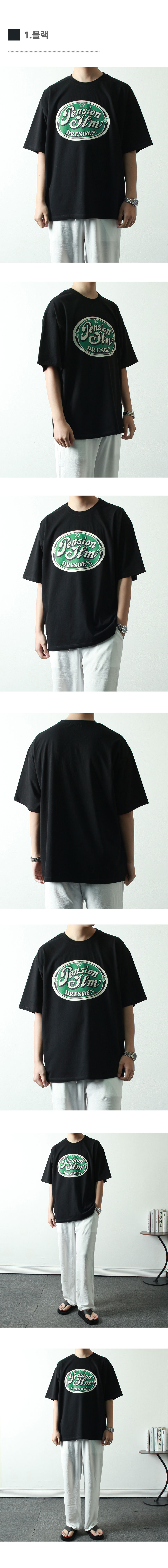 프랭키뉴욕남자반팔티 오버핏 면티 여름 빅사이즈 P프린팅 루즈핏 블랙 화이트 그린_SST