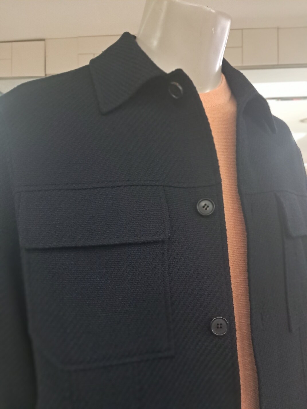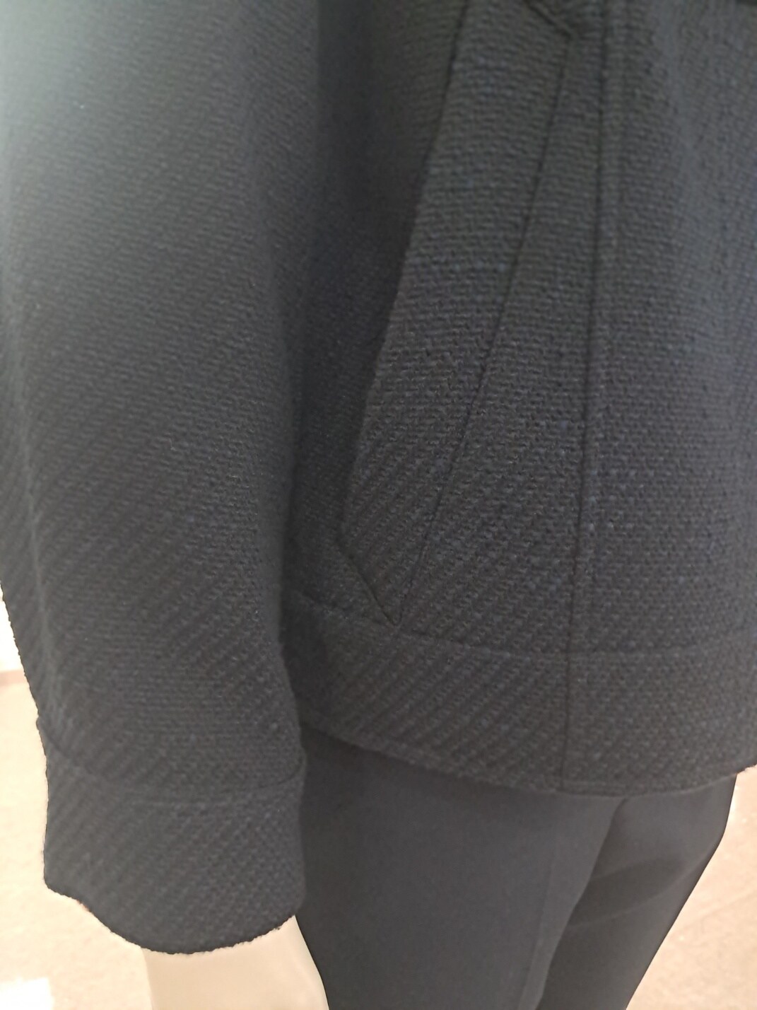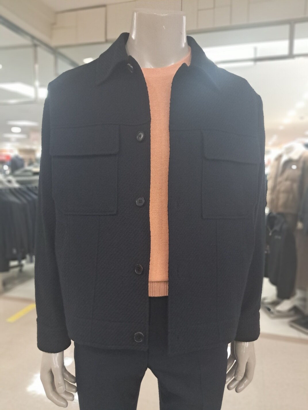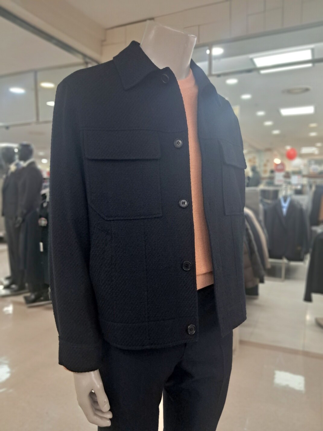 다크네이비컬러에 베이직 디자인 트위드자켓입니다. 입체적 자임과 앞 포켓의 포인트가 돗보이는 간절기 자켓입니다. 정사이즈 핏으로 평소 입으시는 대로 입으시길 추천드립니다.