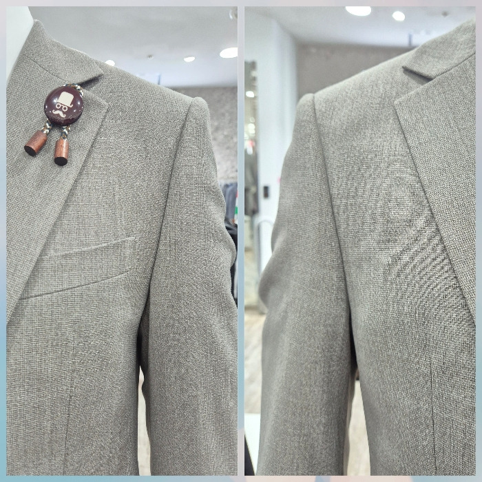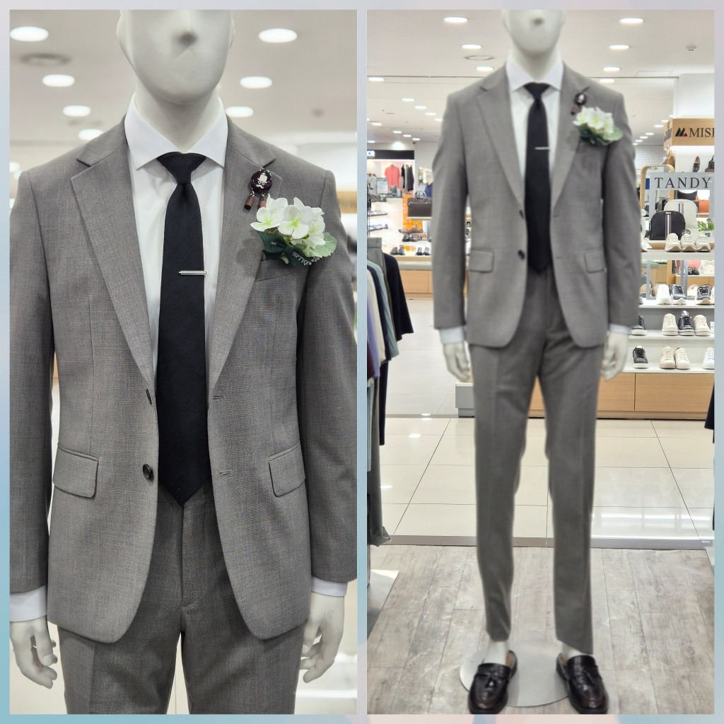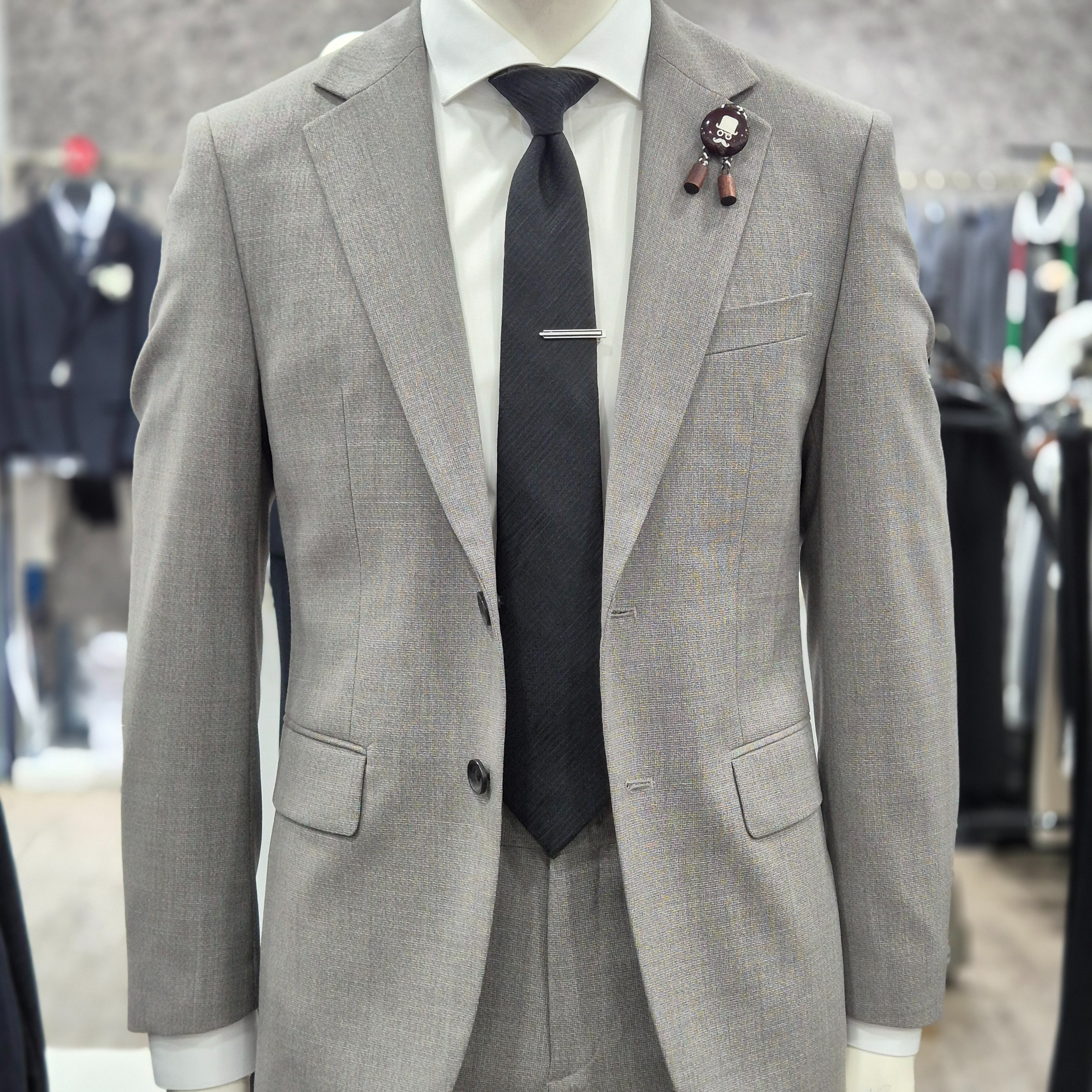 에쉬 베이지 세미 포멀 삼계절 수트입니다 요즘 이런 컬러 많이 찾으시죠~~ 오프라인 인기상품!! 밝은 컬러지만 붕 뜨거나 날려 보이지 않는 컬러를 찾으신다면 추천 드립니다 에쉬 베이지 세미 포멀 정장!! 그레이에 베이지의 믹스 컬러로 요즘 트랜디한 그레이이지컬입니다 기존 트로피컬 조직감에 태번수와 컬러 배색을 통하여 기본물 수트와는 다른 젊은 감성의 세미 포멀 디자인입니다 화면상 통이 좁을까봐 걱정하시는 분들이 계신데 슬림 핏이 아닌 소프트 레귤러 핏으로 무난하고 베이직한 핏입니다