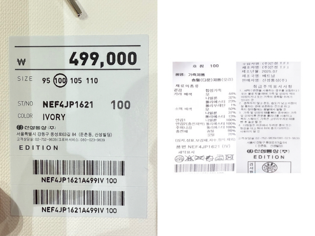 | 제조자/수입자 | 신성통상(주) / (주)은성 T.F.I |