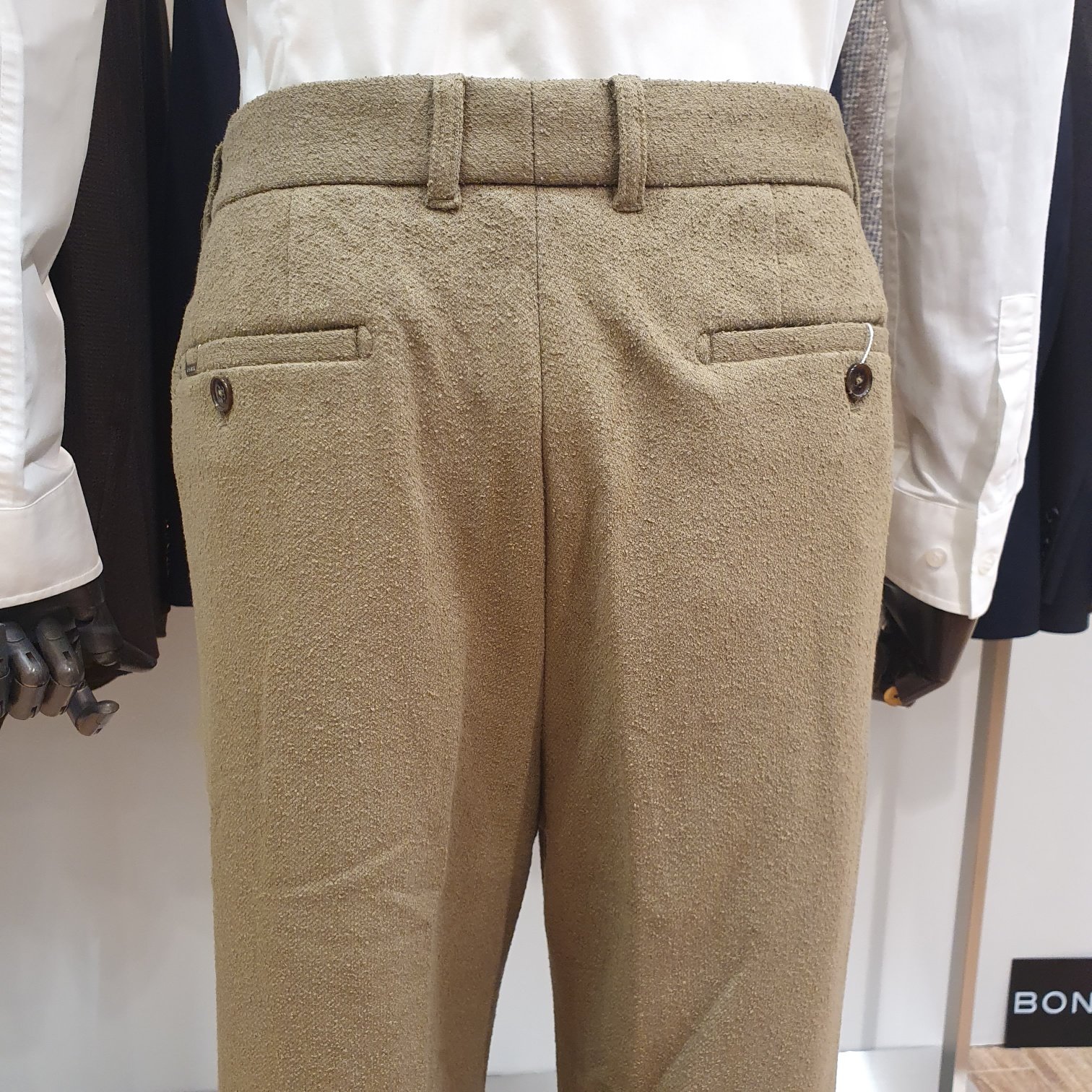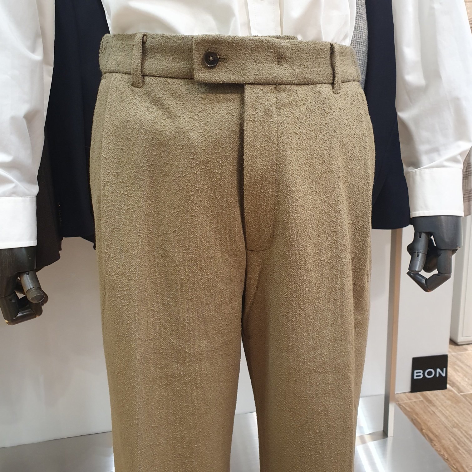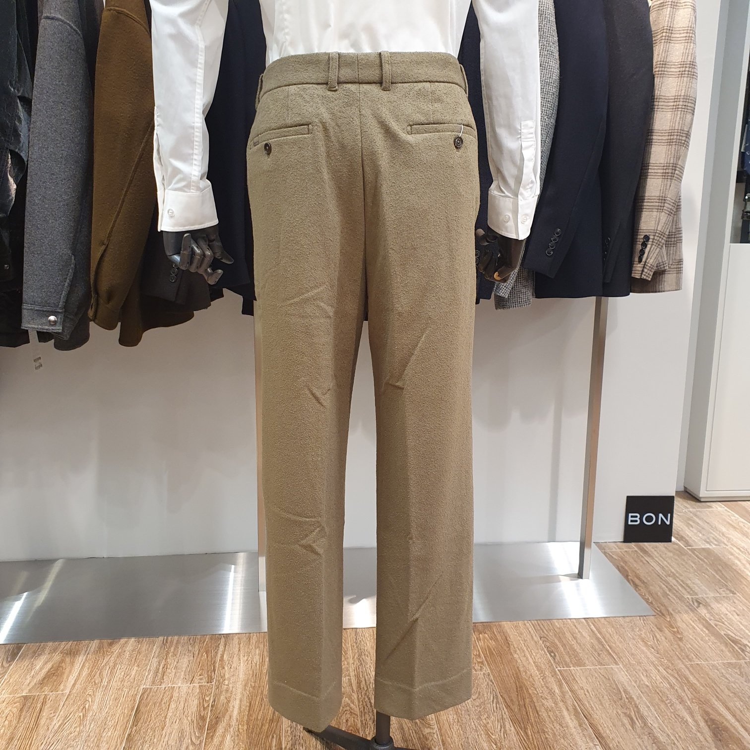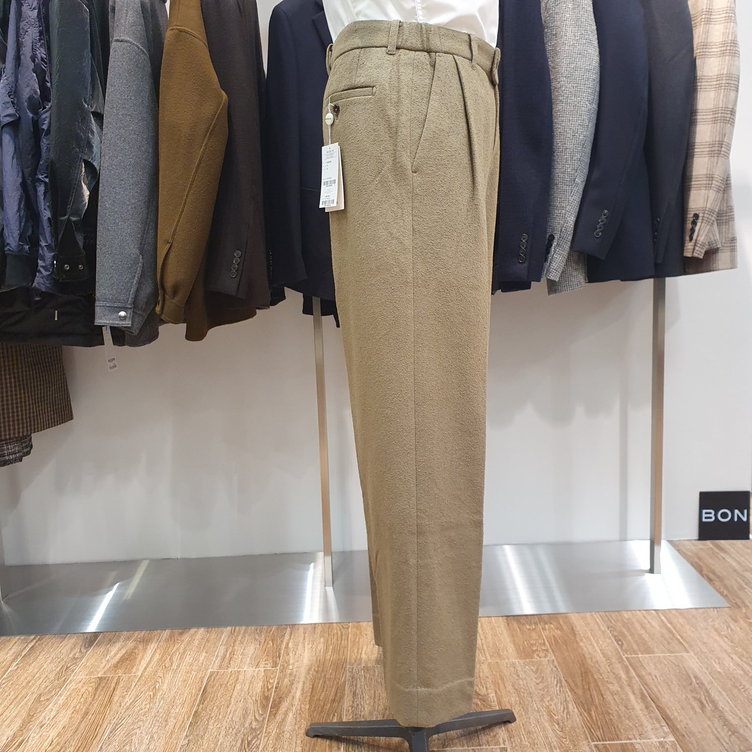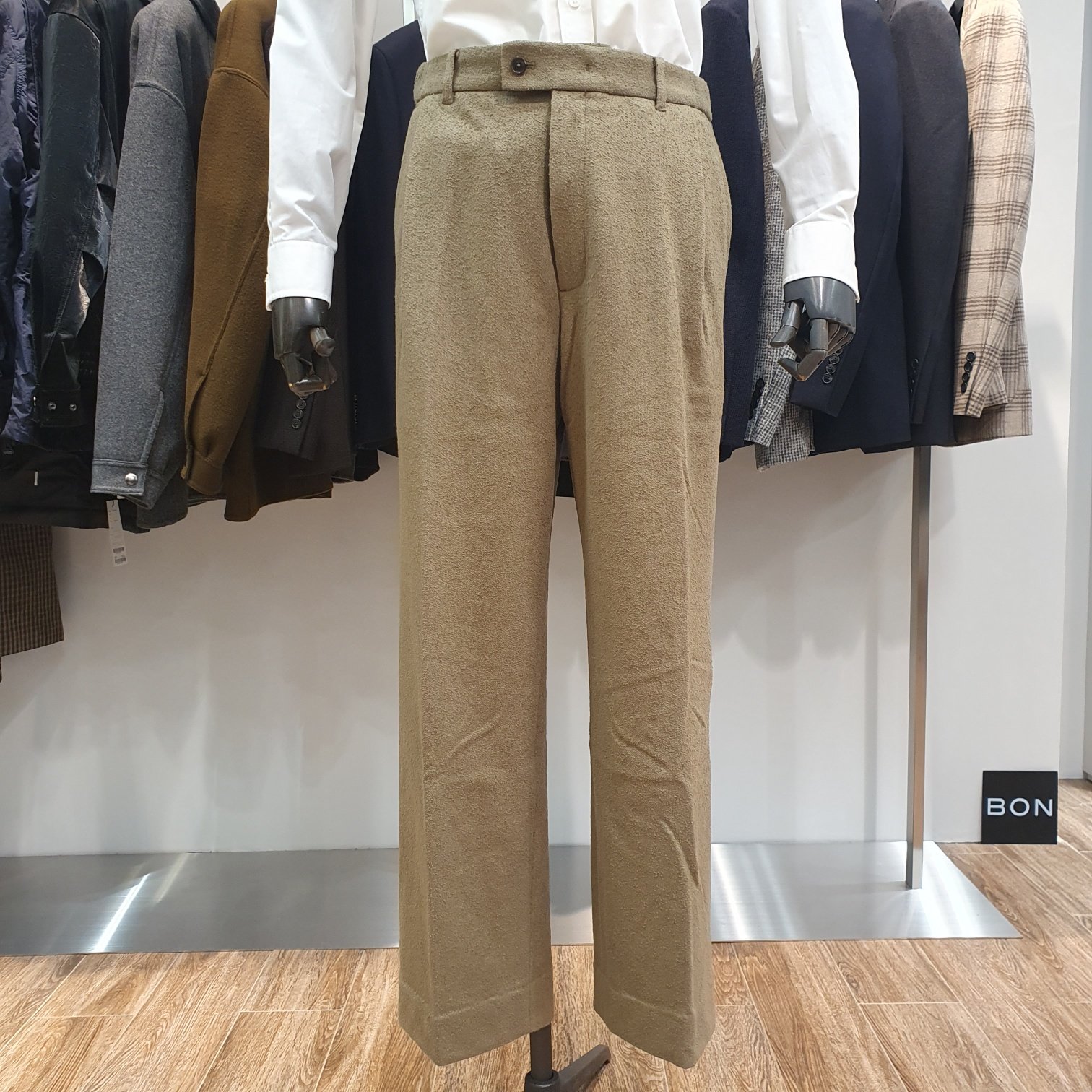 BON 카키 스트레이트핏 테리 부클 저지 팬츠
