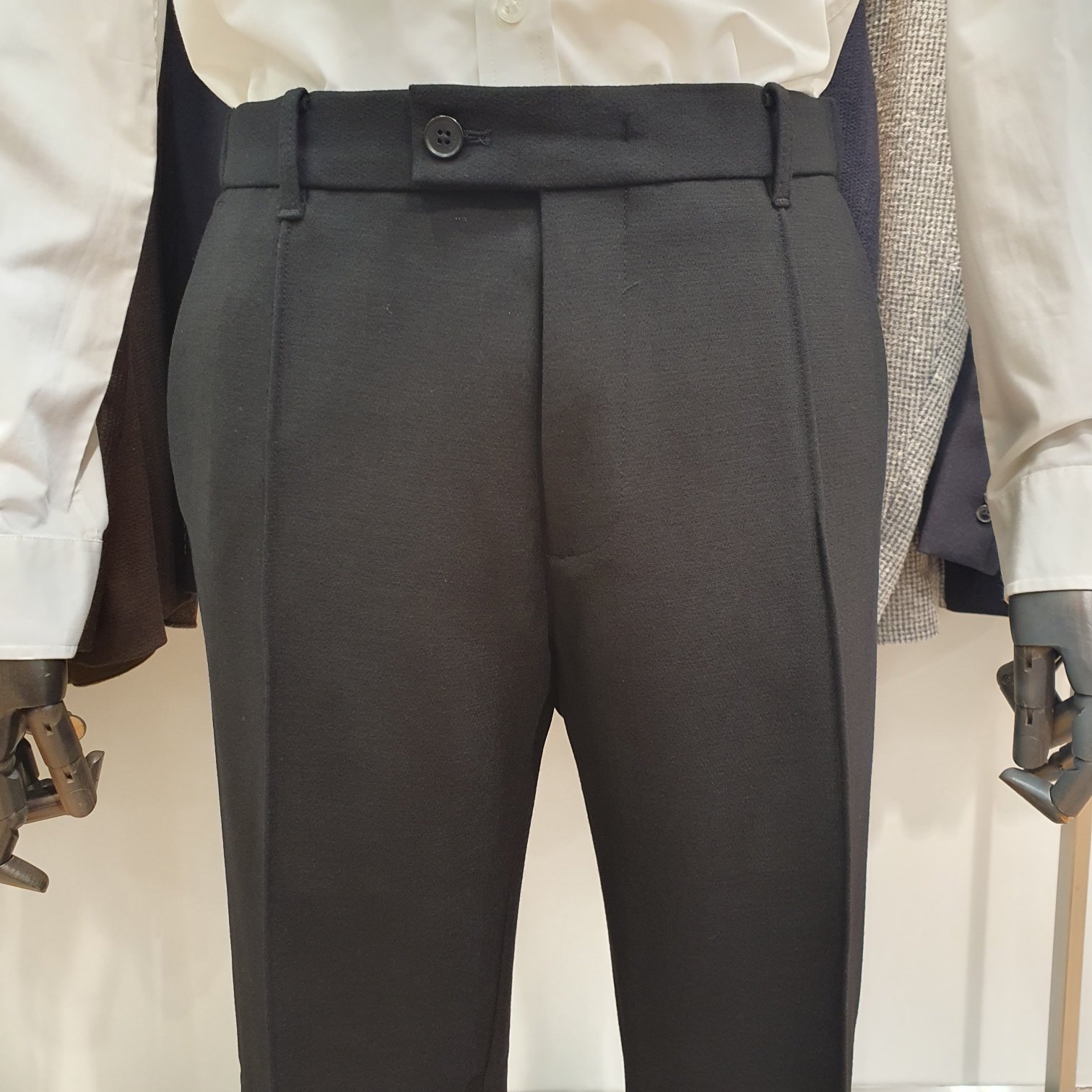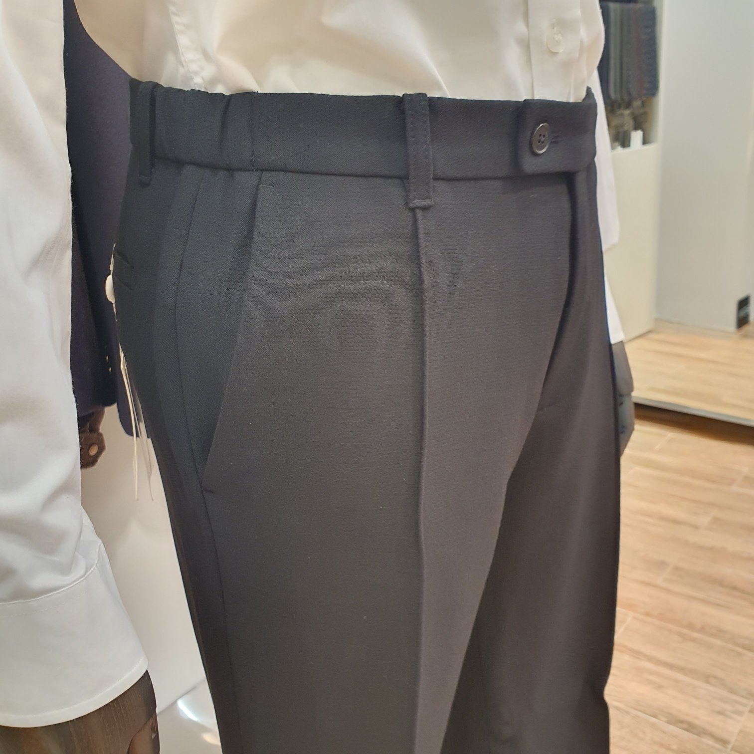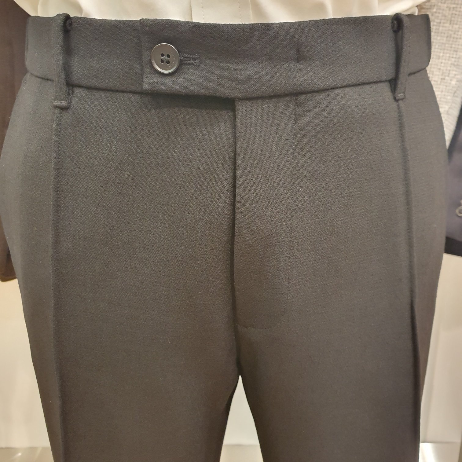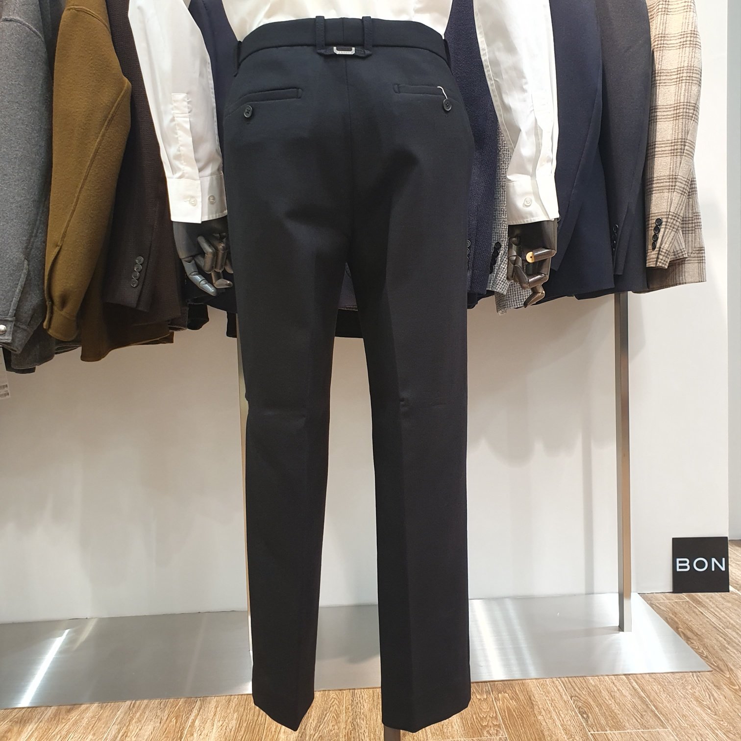 BON 블랙 울 혼방 핀턱 테이퍼드 팬츠