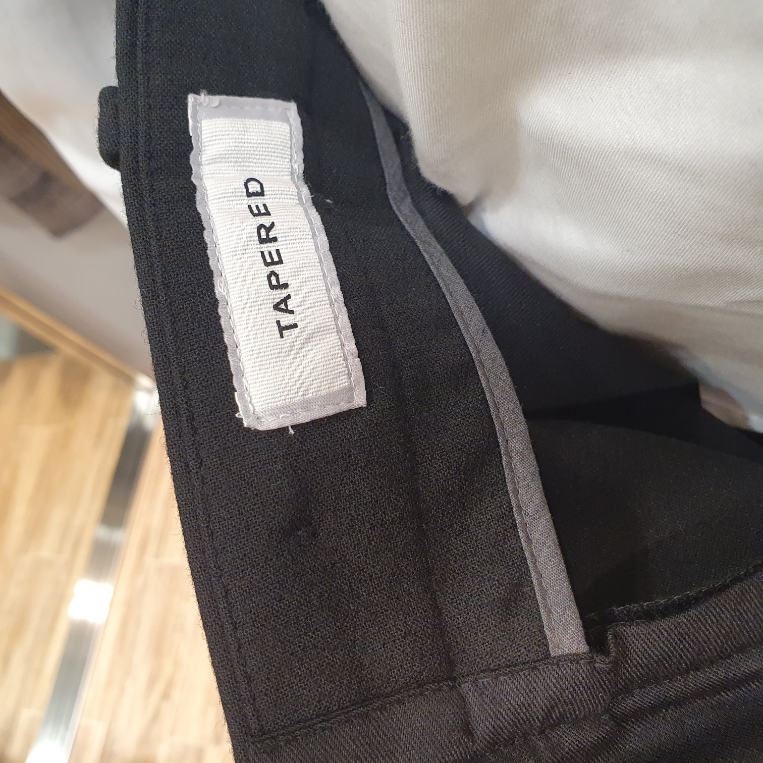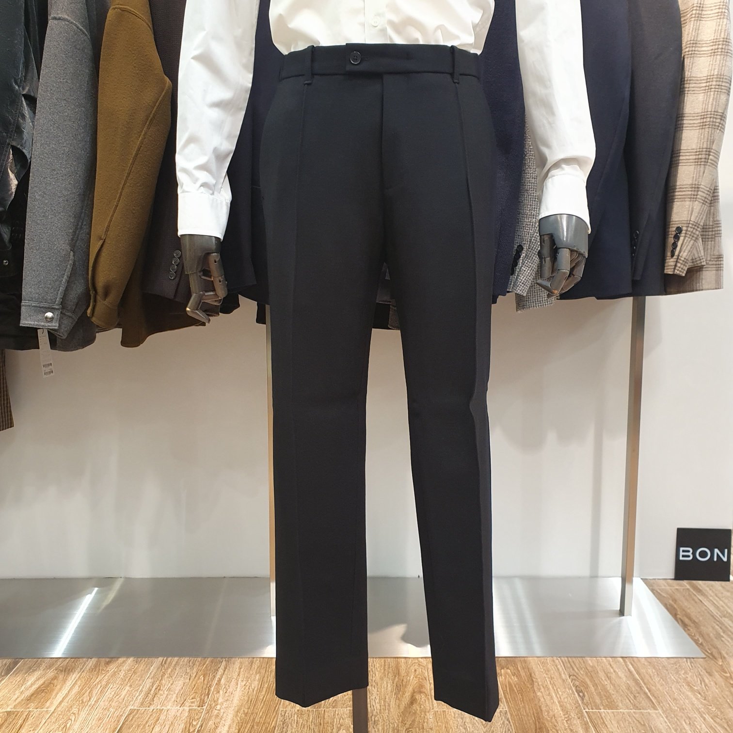 블랙 핀턱 테이퍼드핏 데일리팬츠.