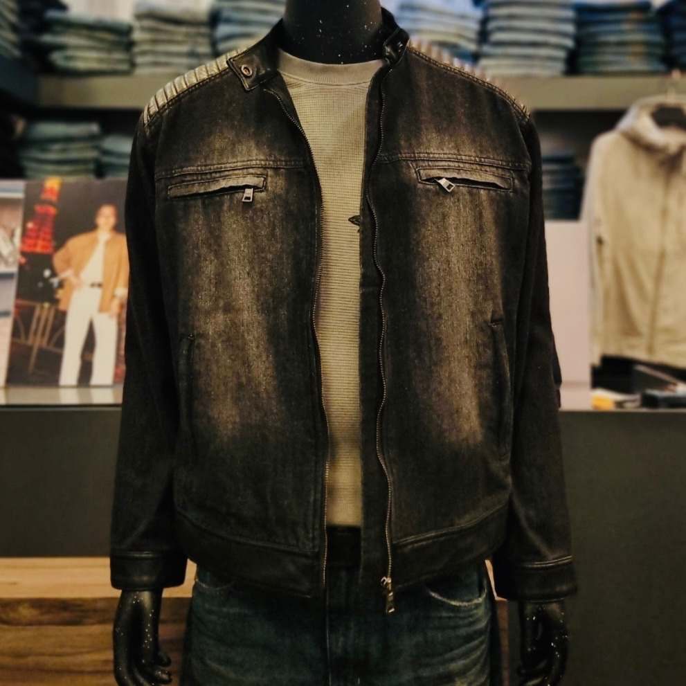 남성 가죽 패치 바이커 BLACK 데님 자켓