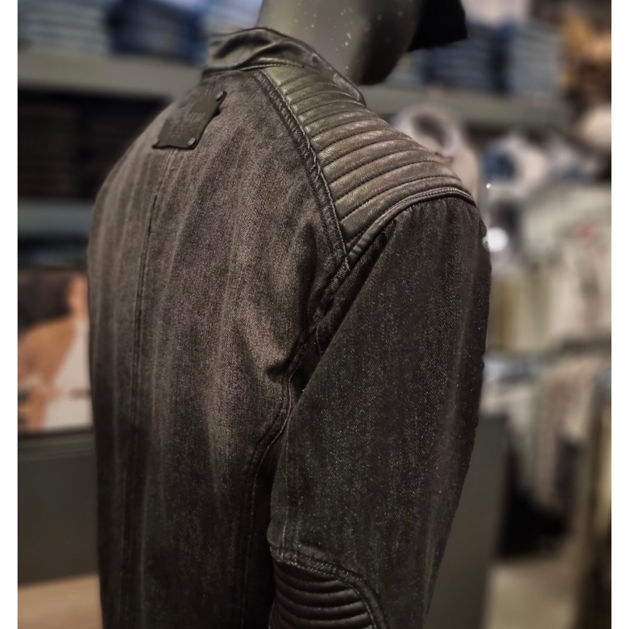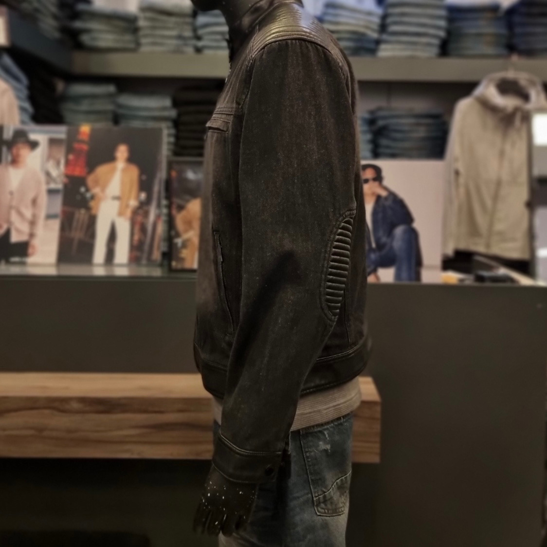 남성 가죽 패치 바이커 BLACK 데님 자켓_US