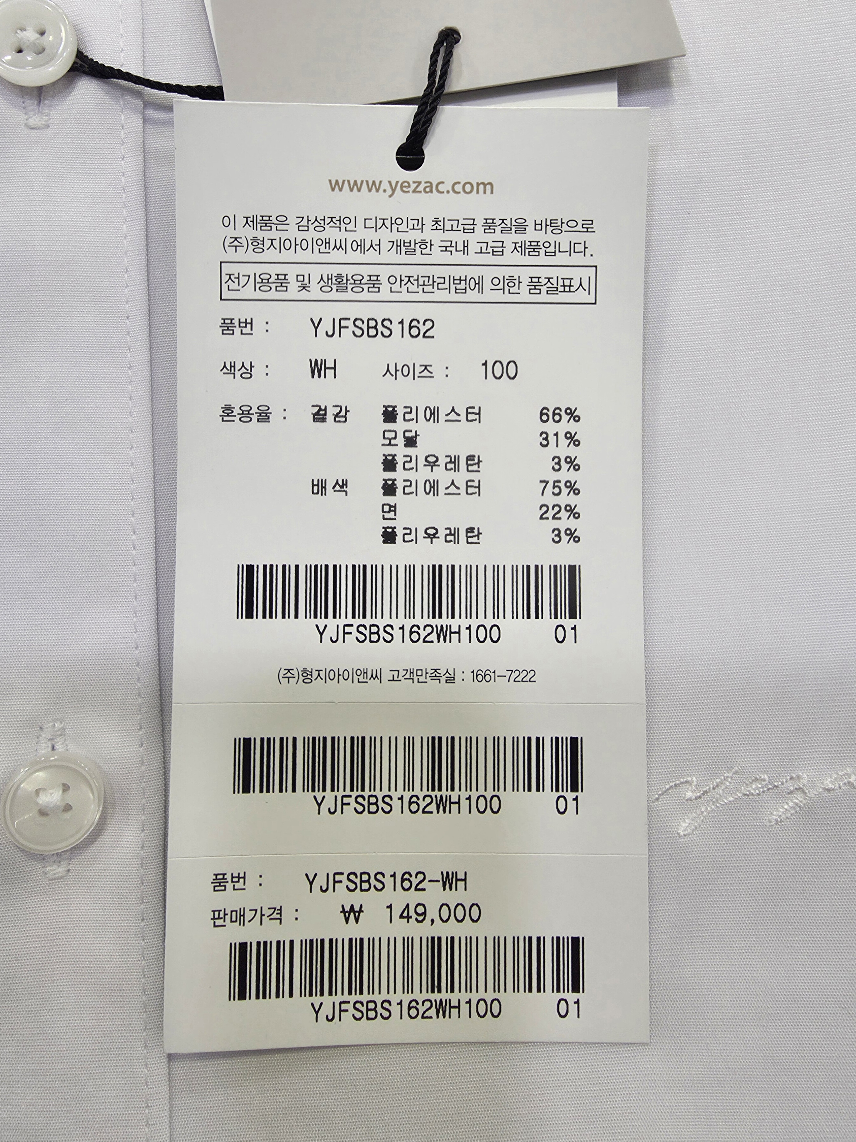 예작예작 화이트 모달 스판 링클프리 슬림핏셔츠 YJFSBS162WH (P003737
