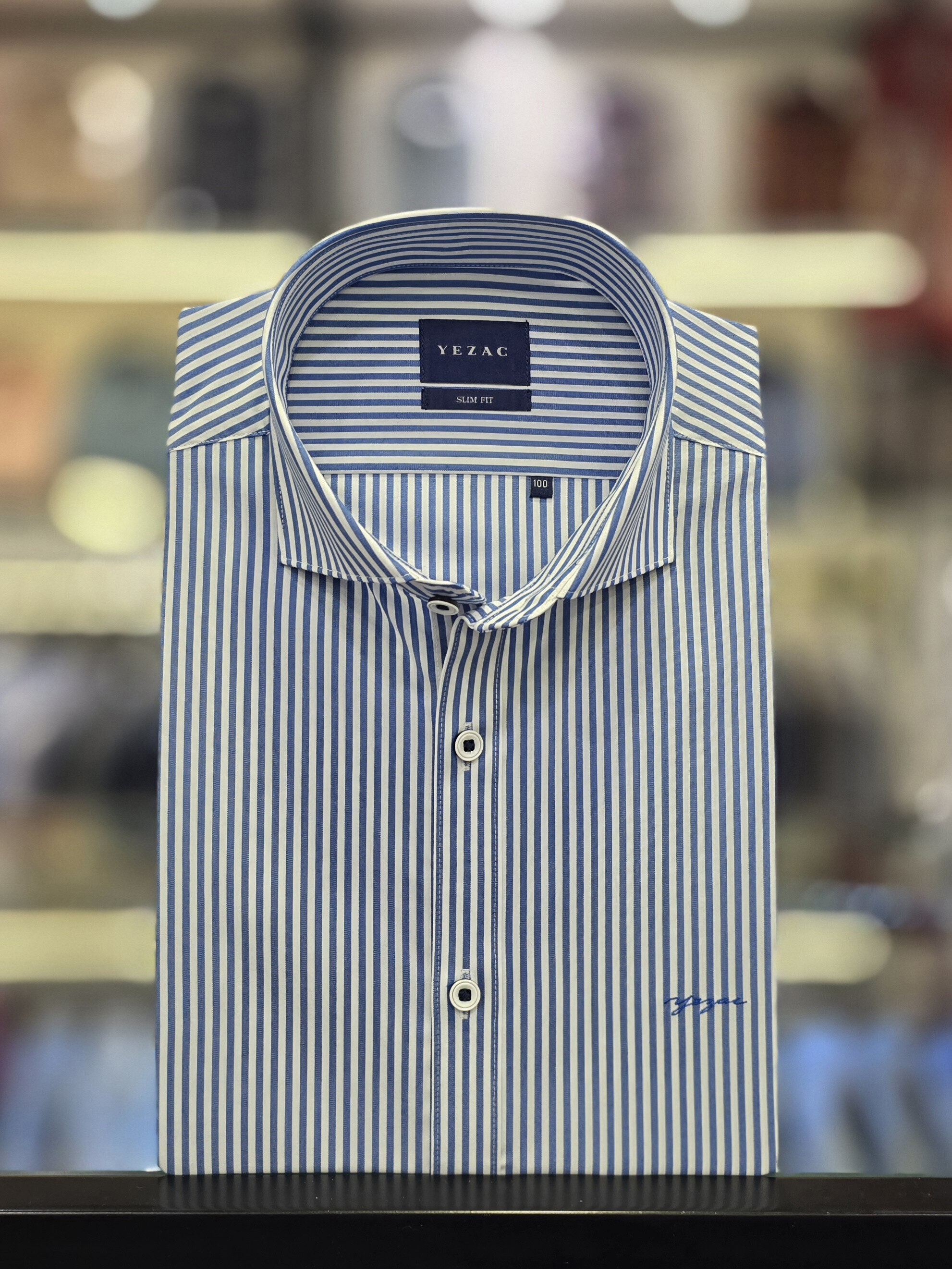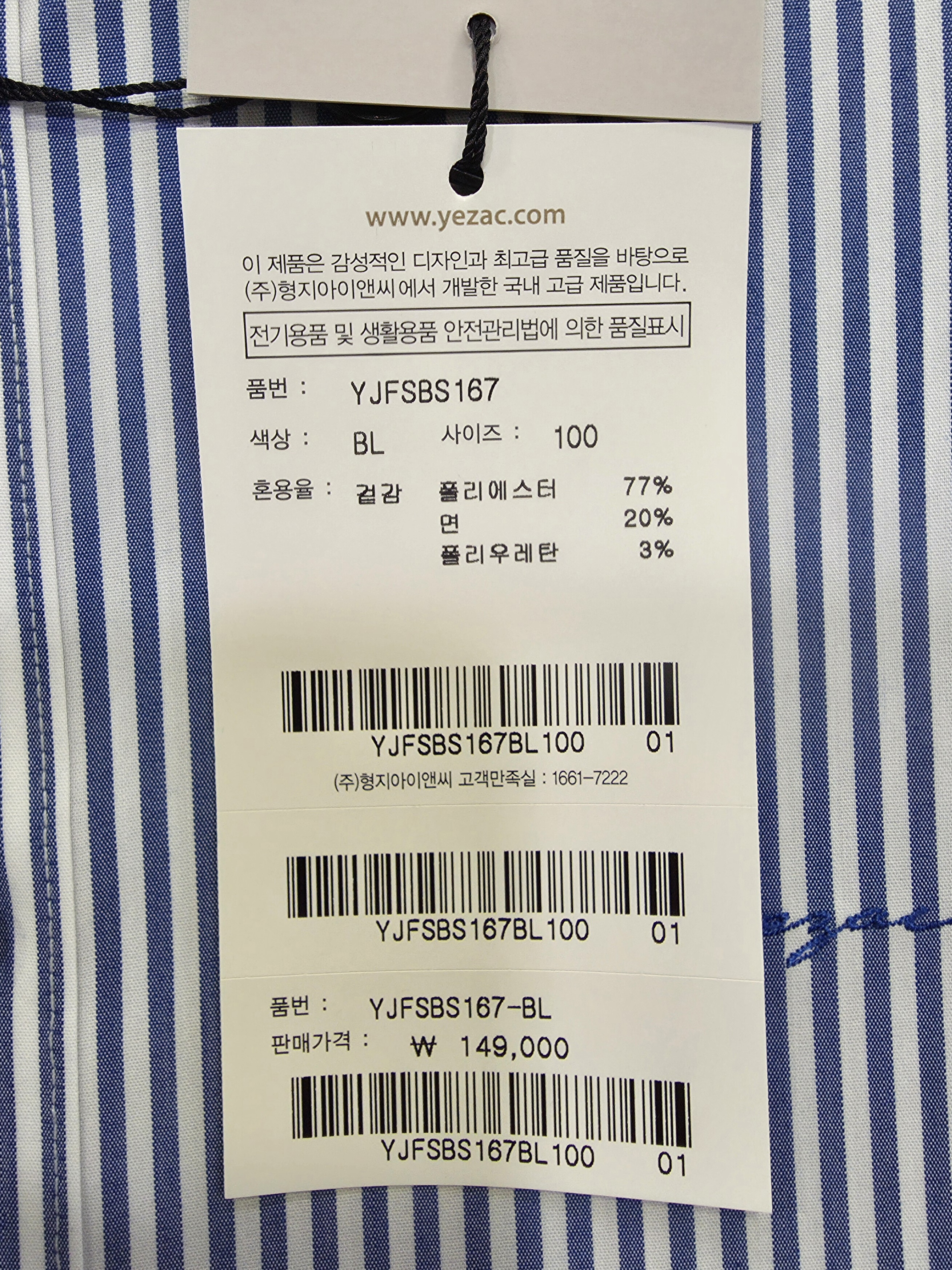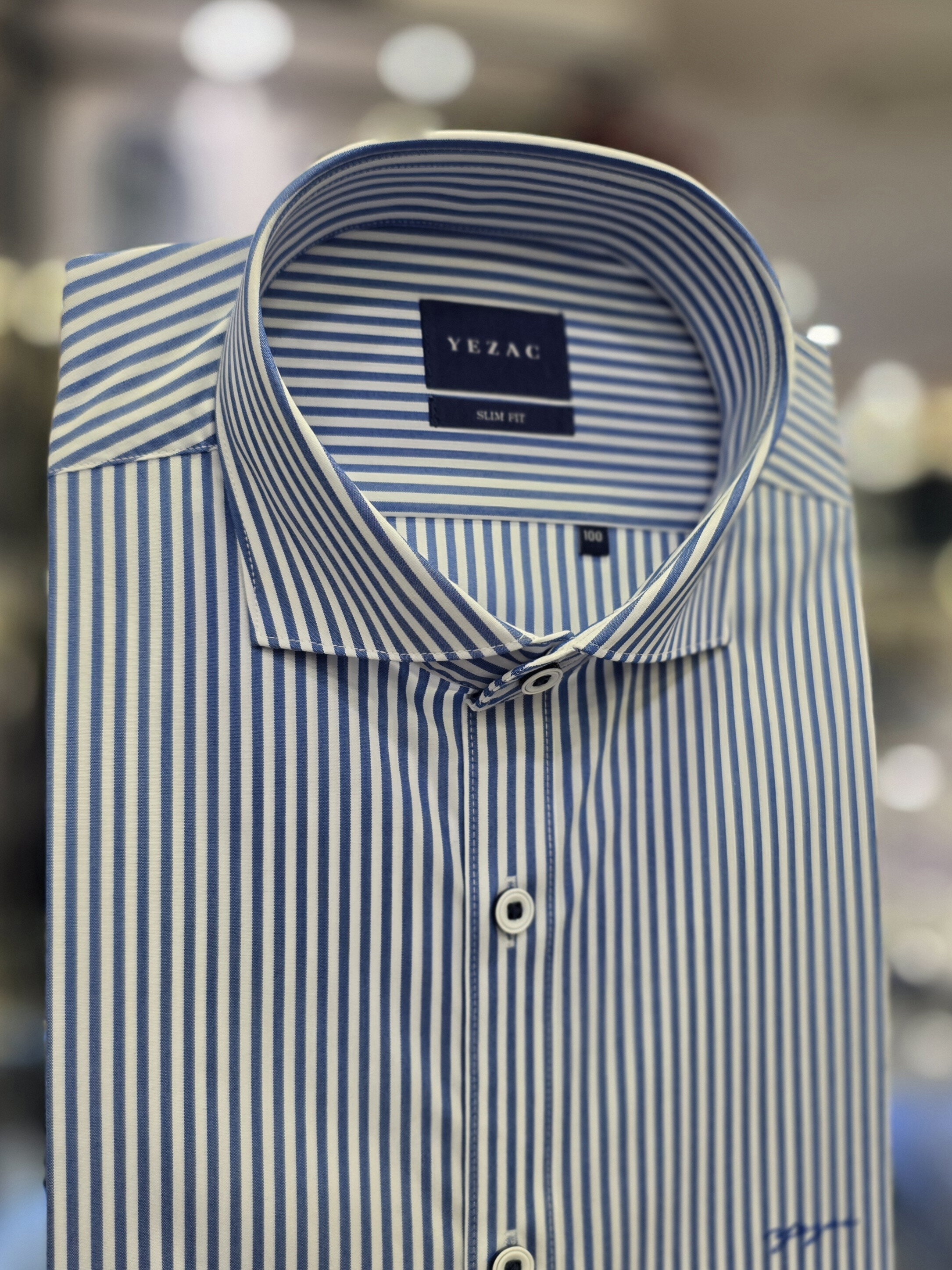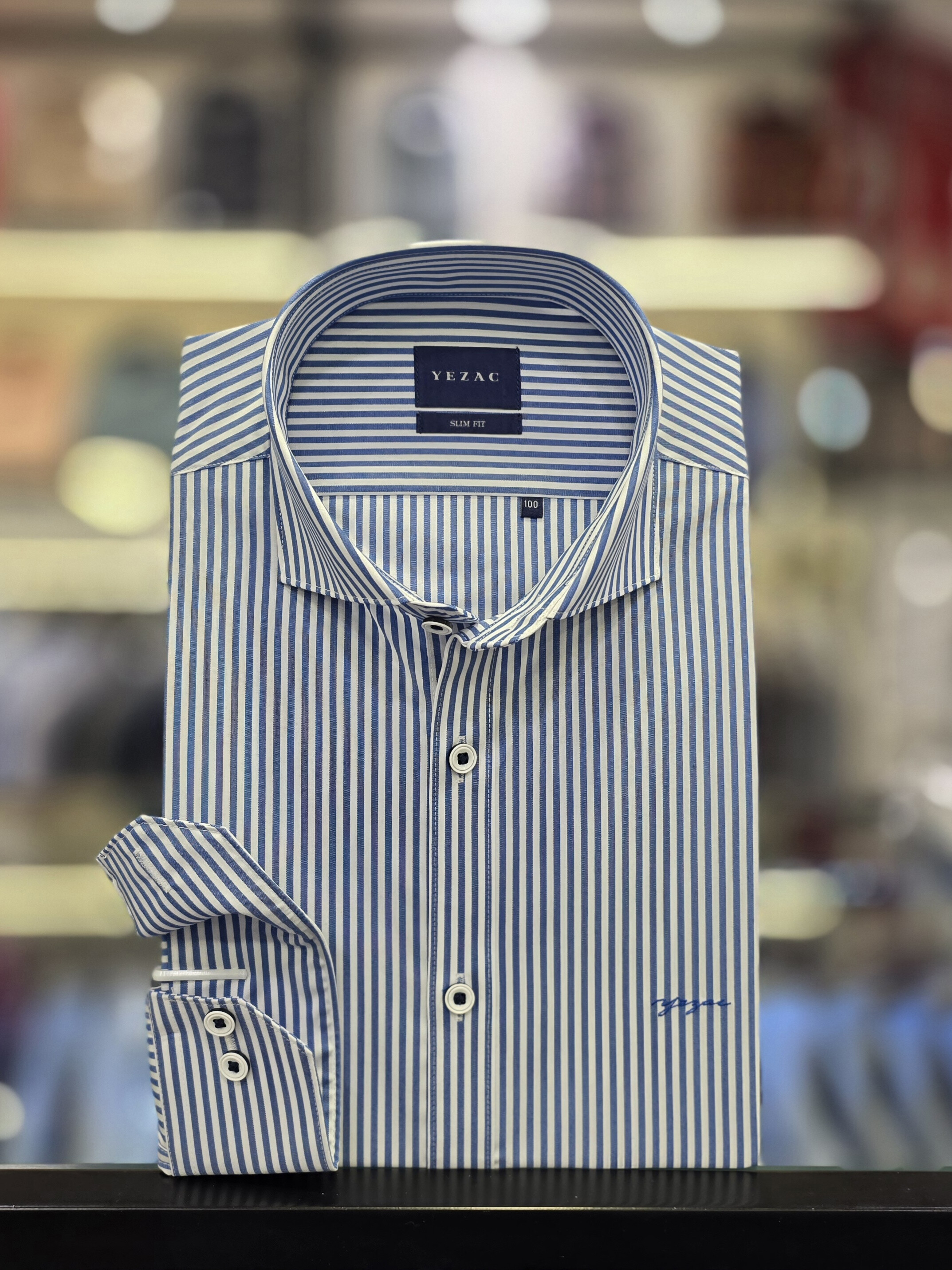 예작예작 면TC 스판 와이드카_라 스트라이프 슬림핏셔츠 YJFSBS167BL (P