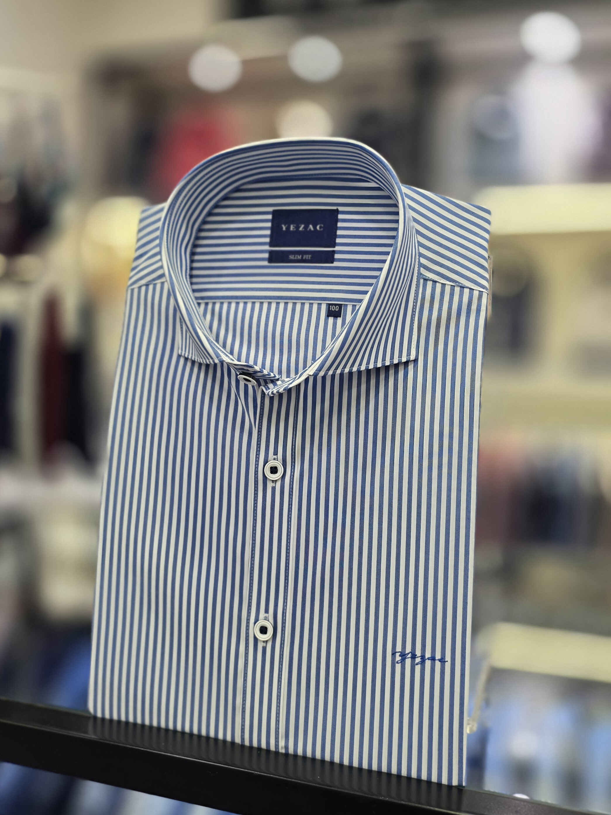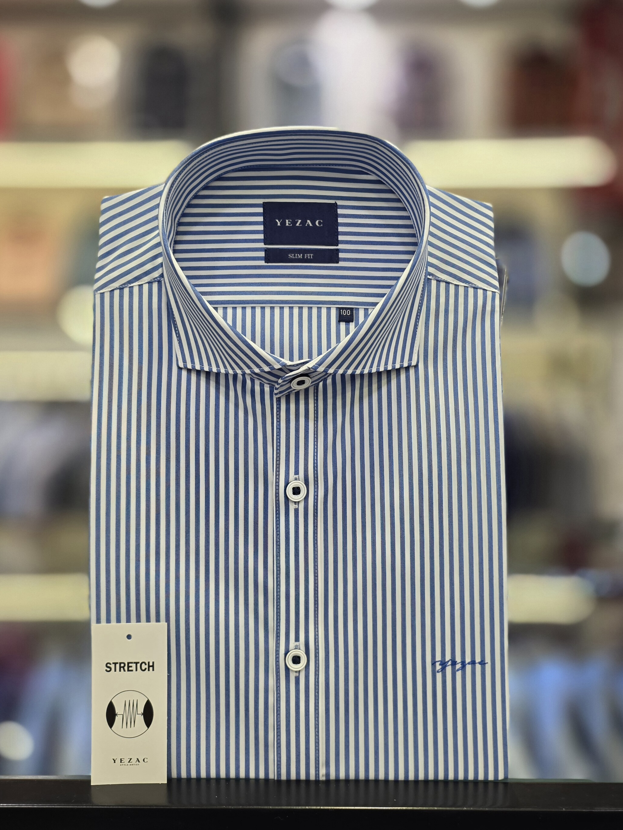 면TC 스판 와이드카라 스트라이프 슬림핏셔츠