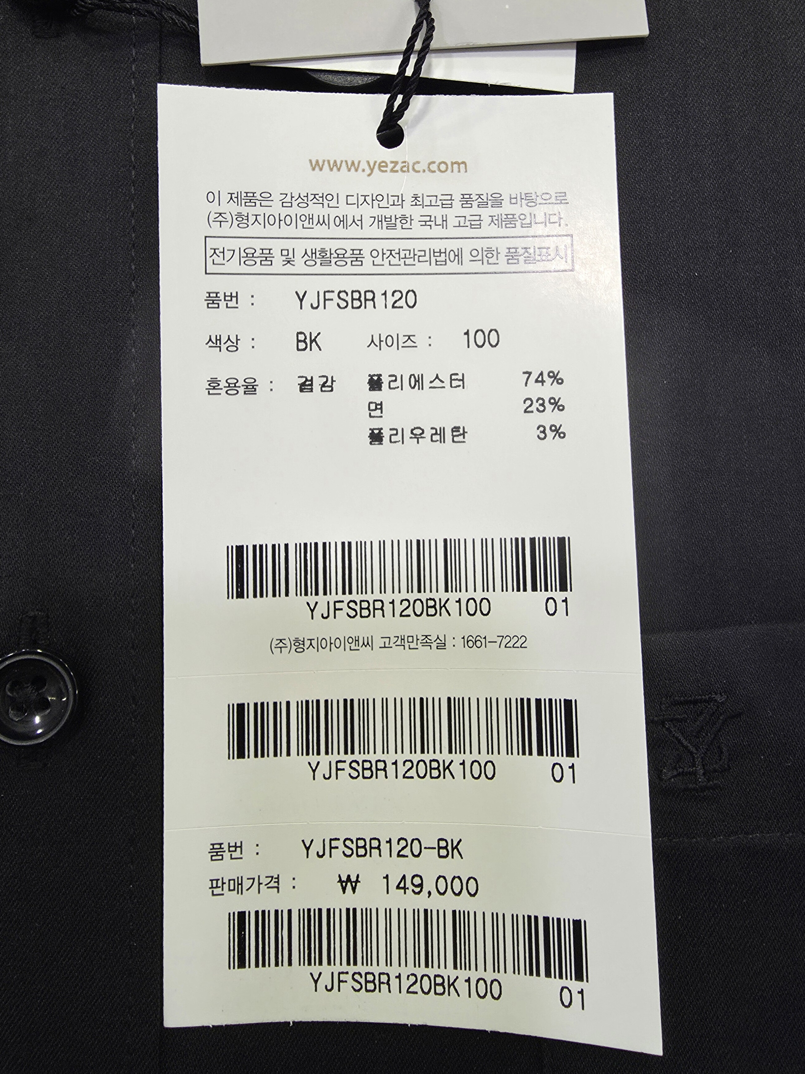 예작예작 블랙 면TC 스판 일반핏셔츠 YJFSBR120BK (P003737851)