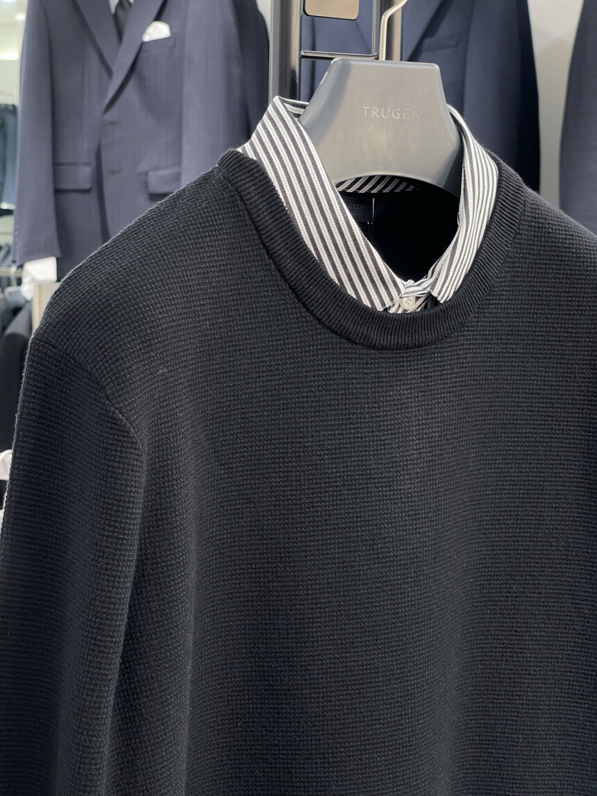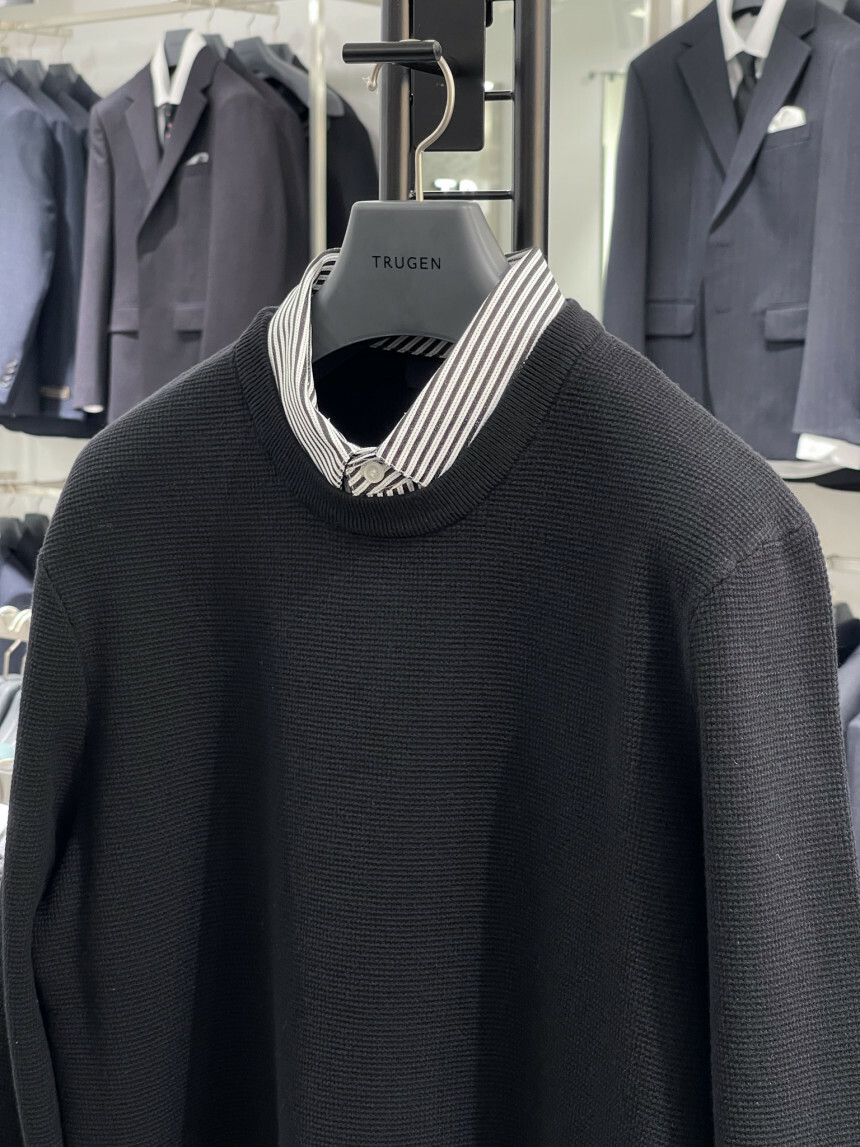 · 셔츠를 겹쳐 넣은 디자인의 셔츠레이어드 니트 제품