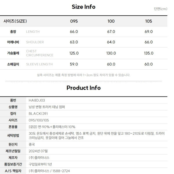 남성 변형 투웨이지퍼 트러커 데님 점퍼입니다