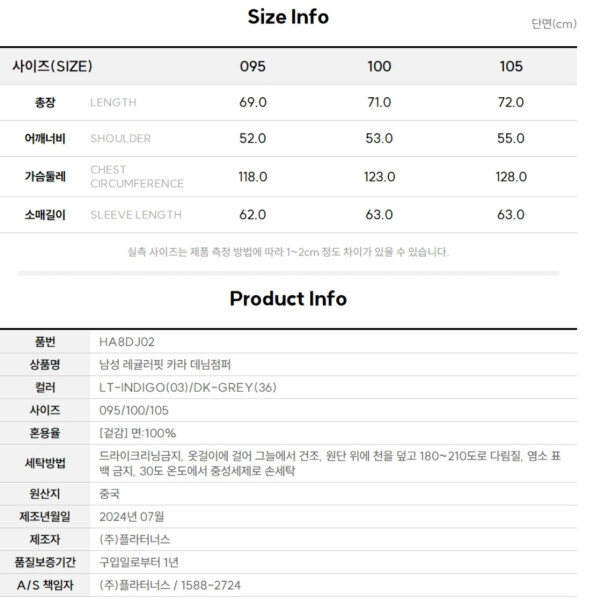 남성 오버핏 카라 데님점퍼입니다