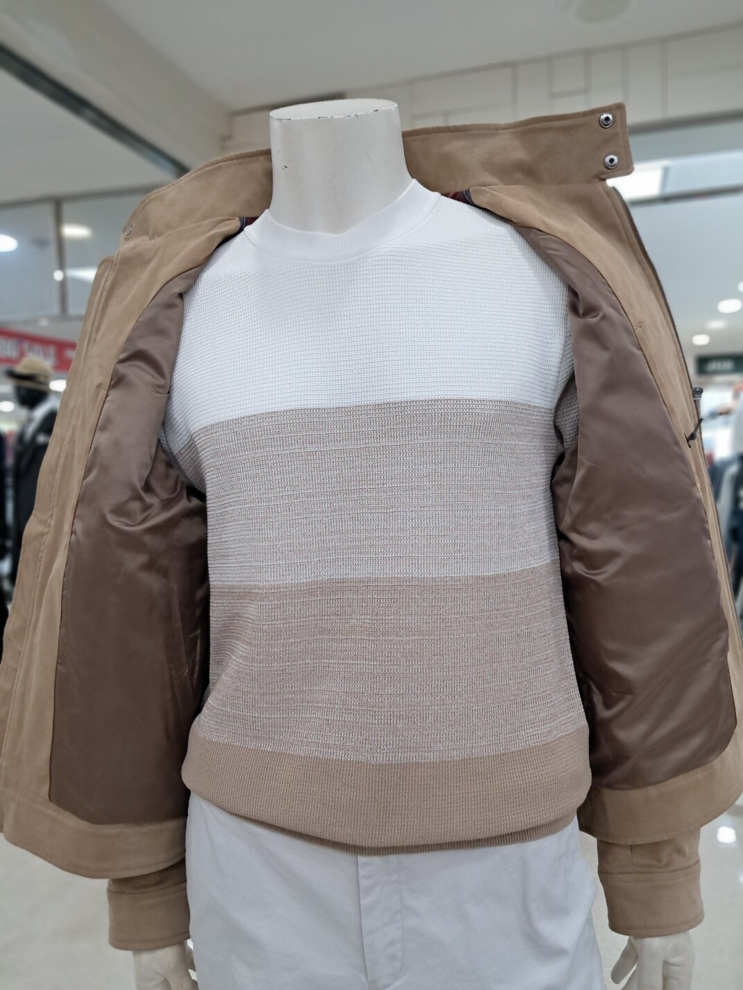 면혼방 베이지색상의 오버핏 차이나점퍼입니다. 고급스러움과 멋스러운, 오버핏라인에 아까울정도로 세련된 숏 블루종 점퍼입니다. 다양한, 슬렉스와 인어류를 코디하여 입으신다면 시선을 집중할만큼 세련된 컬러와 핏감이입니다. 정사이즈 핏으로 평소 입으시는 대로 입으시길 추천드립니다.