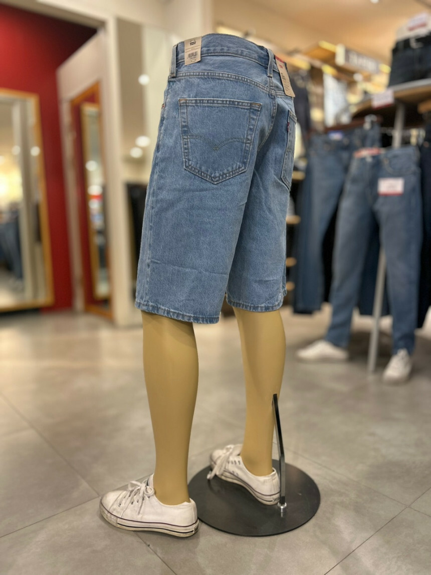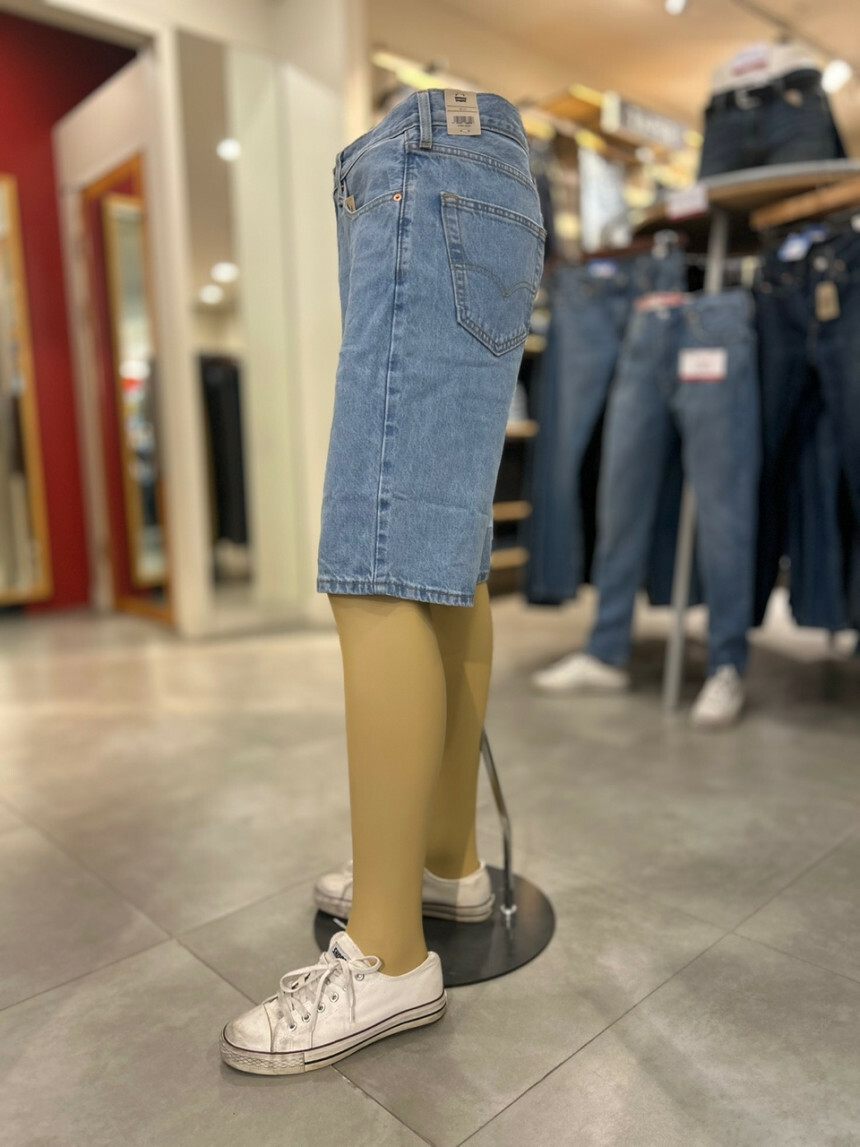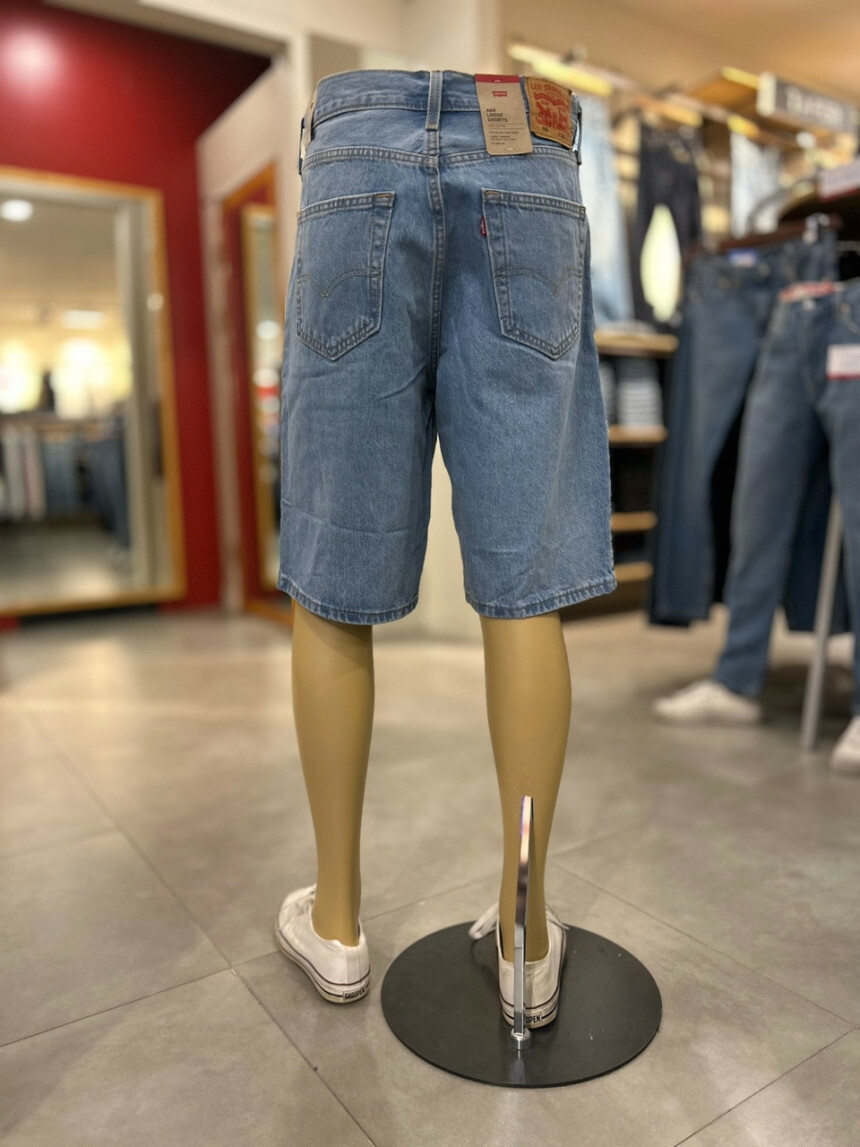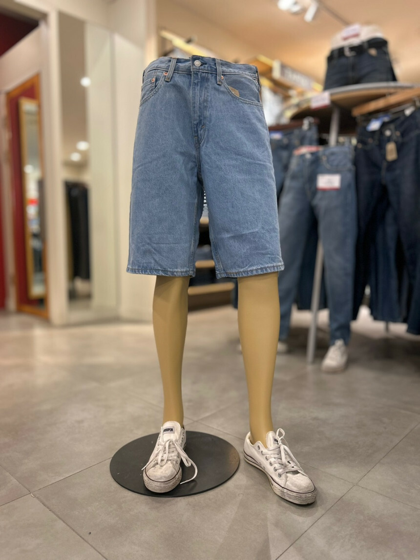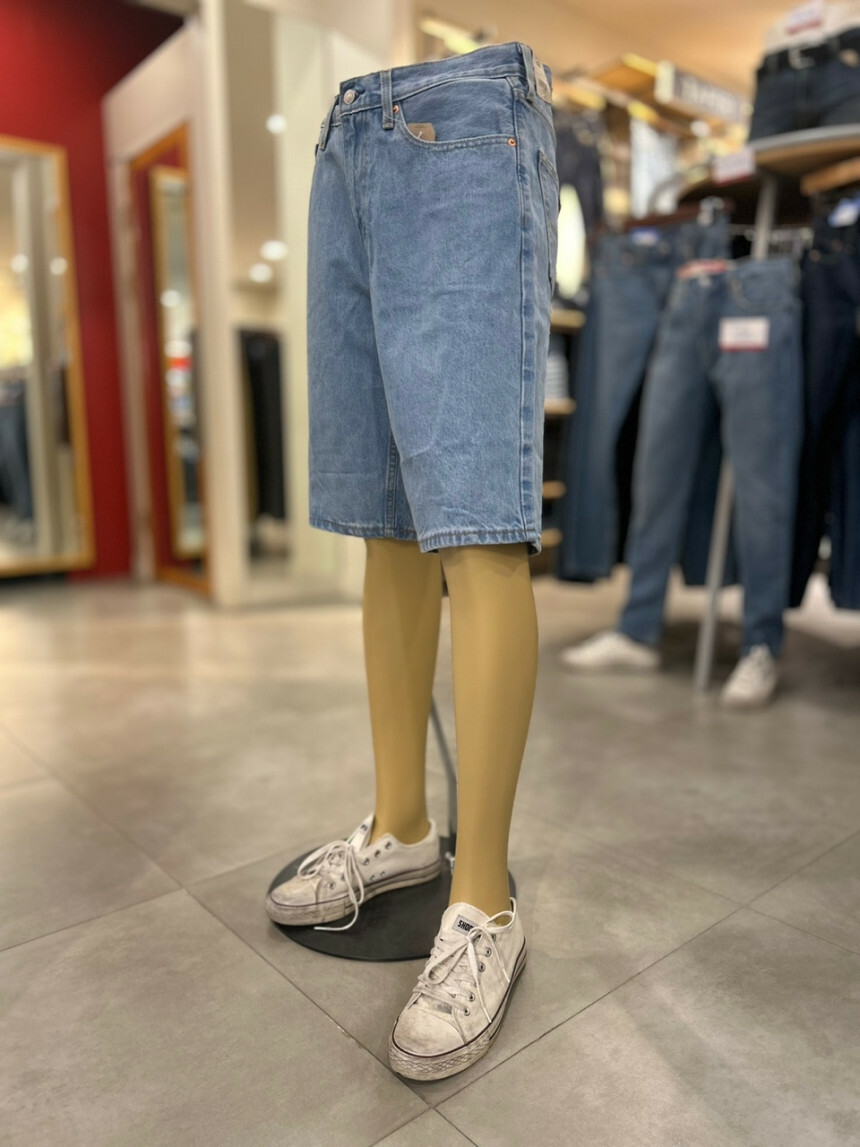 블루 컬러의 남성 루즈핏 데님 반바지입니다.