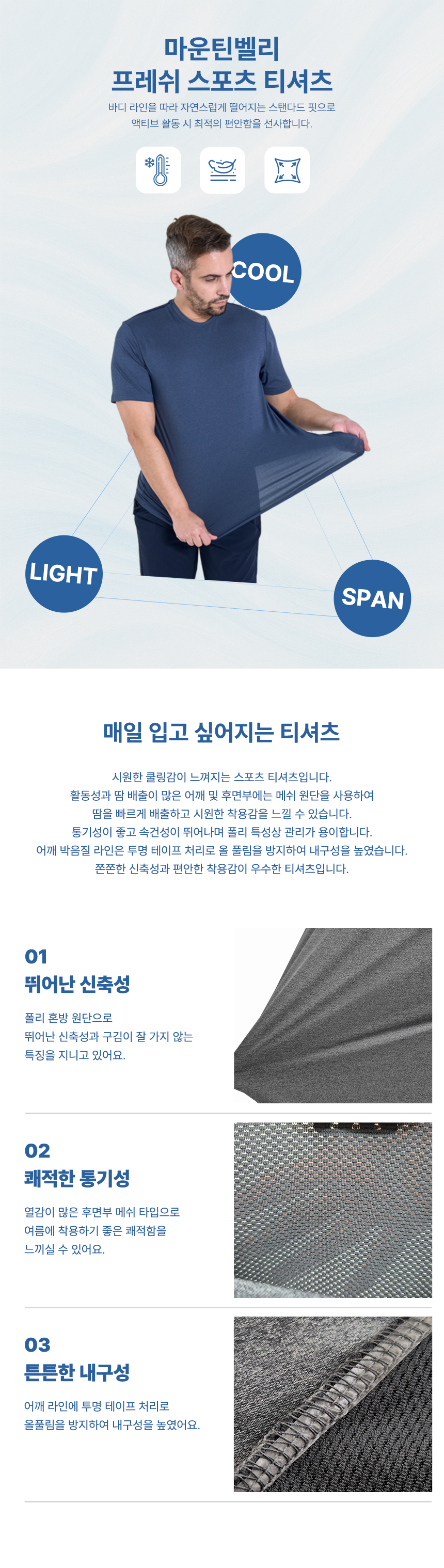 마운틴벨리1+1 남성 여름 프레쉬 스포츠 라운드 티셔츠 MVT4268