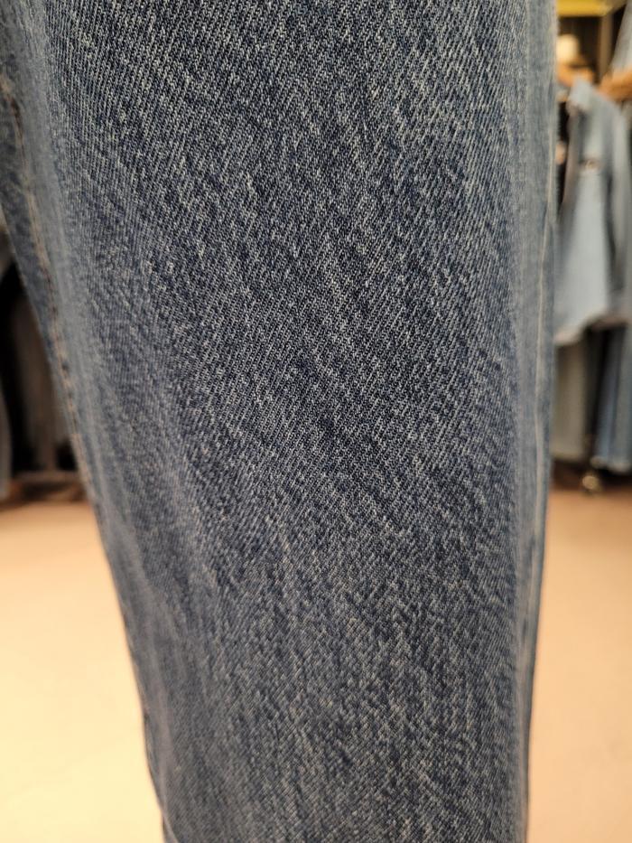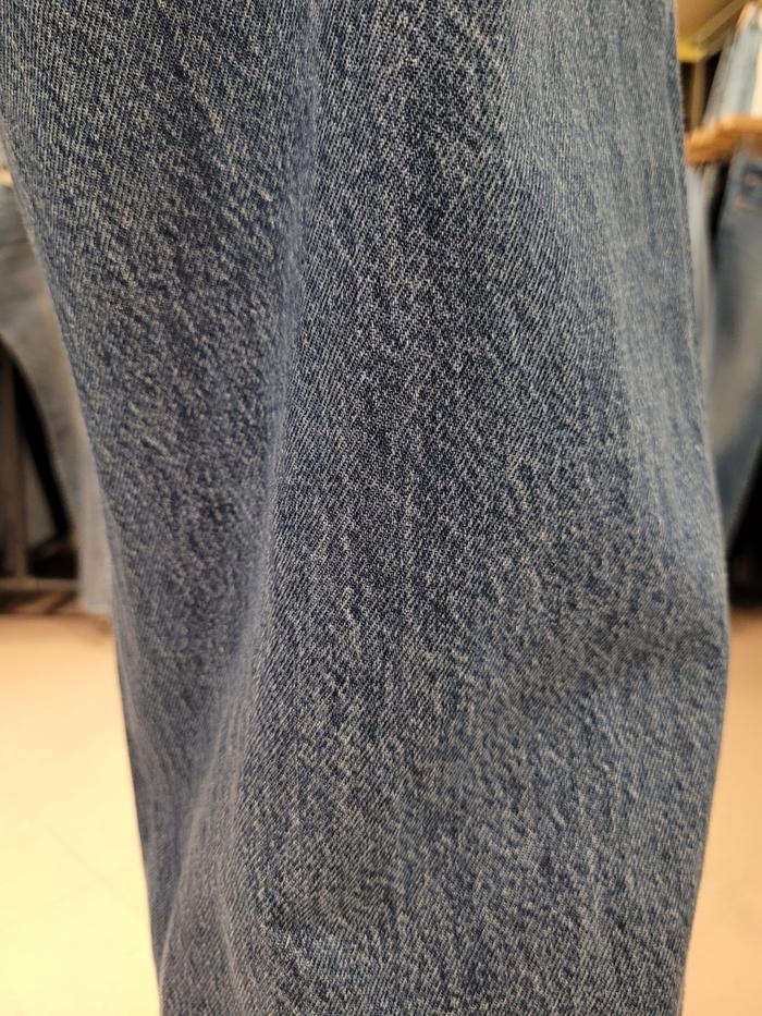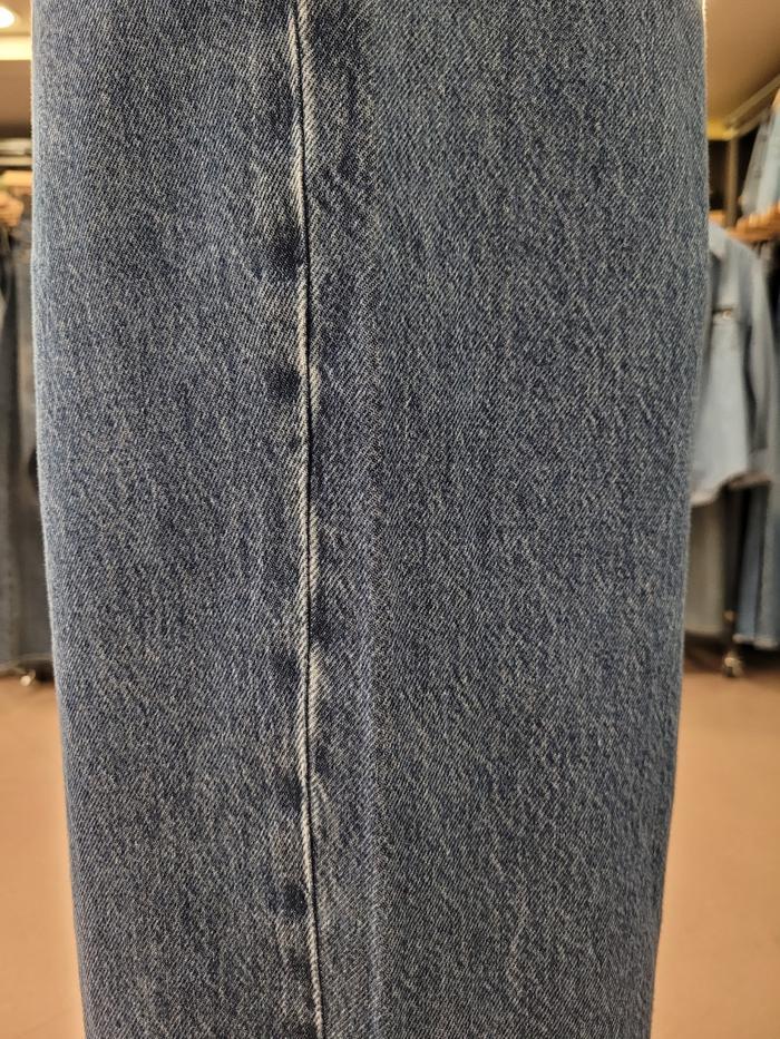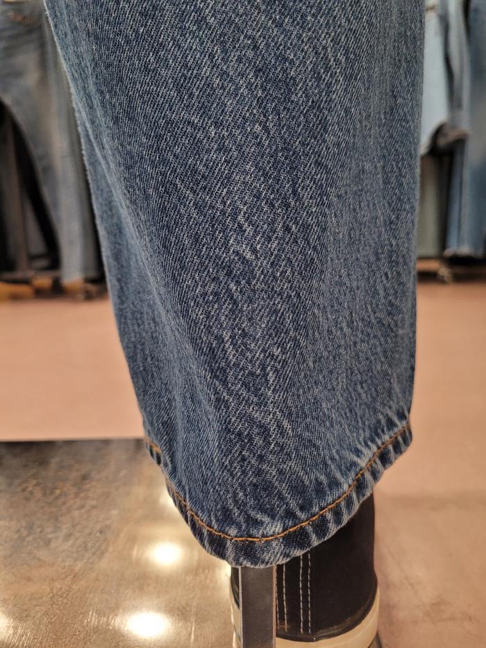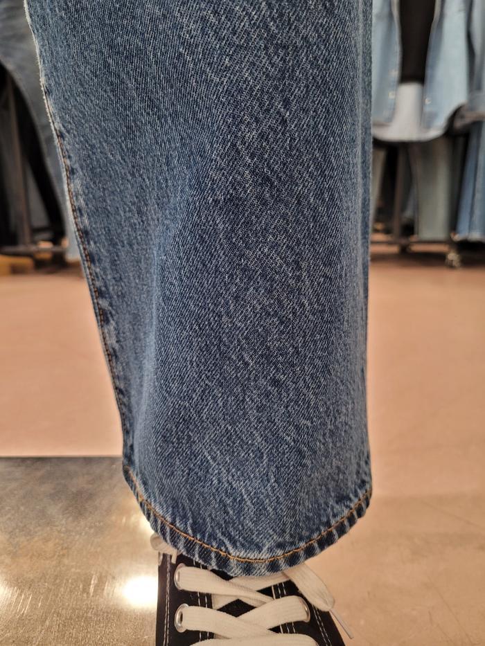 90년대의 대담한 스타일을 재현한 진입니다. 발목까지 헐렁한 느낌을 주어 캐주얼한 매력이 있습니다.