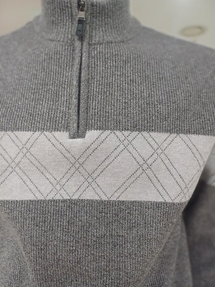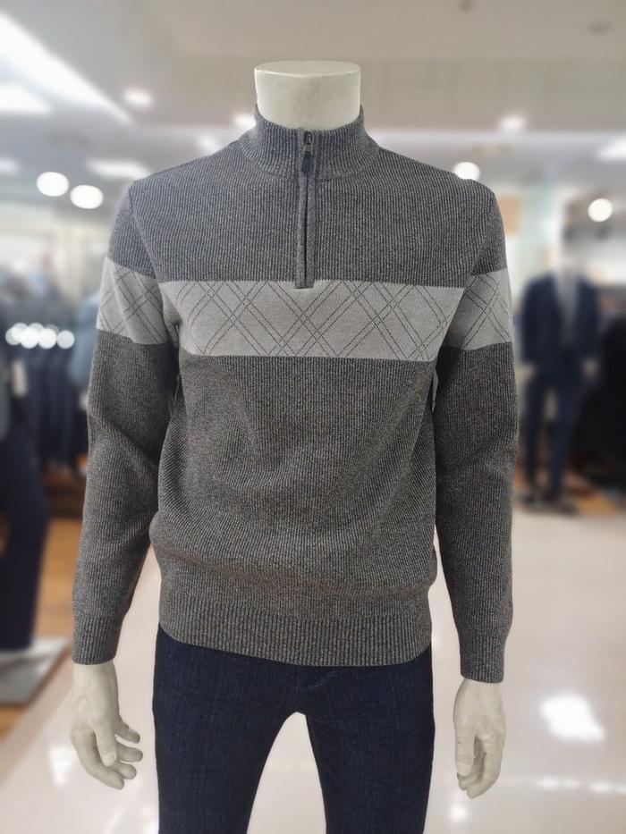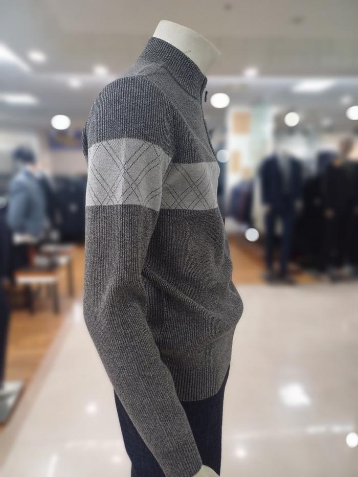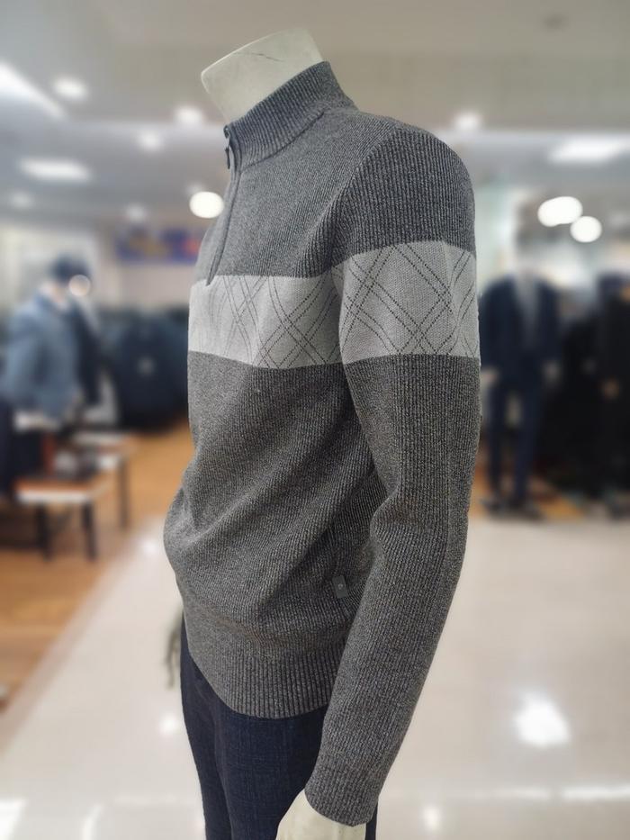 피에르가르뎅 세이브존05 블록 스트라이프 조직감 반집엎 스웨터 (PPKR4301) (S23690385)
