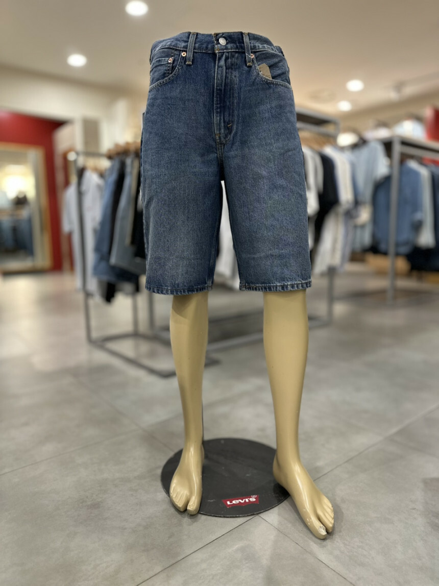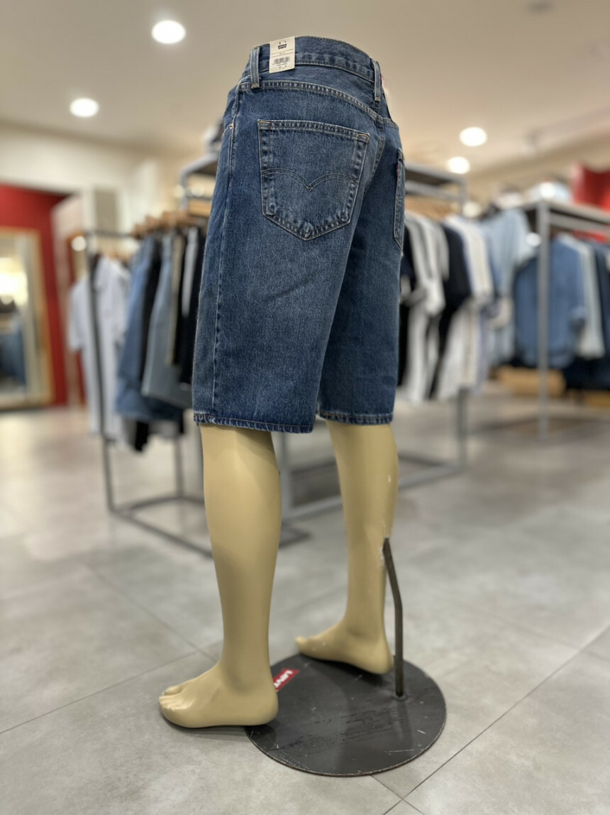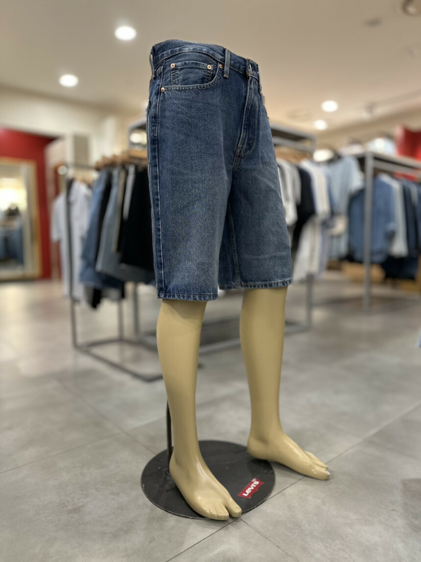 다크블루 컬러의 남성 루즈핏 데님 반바지입니다.