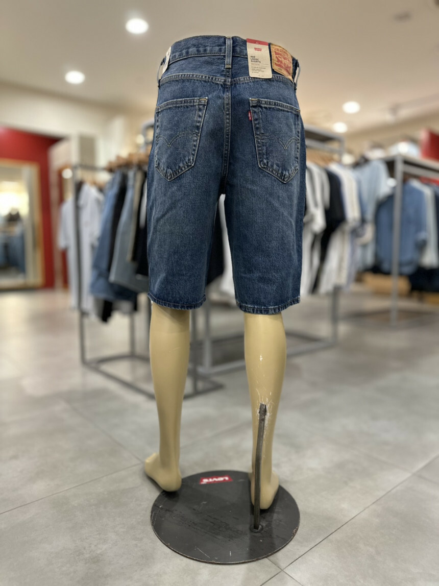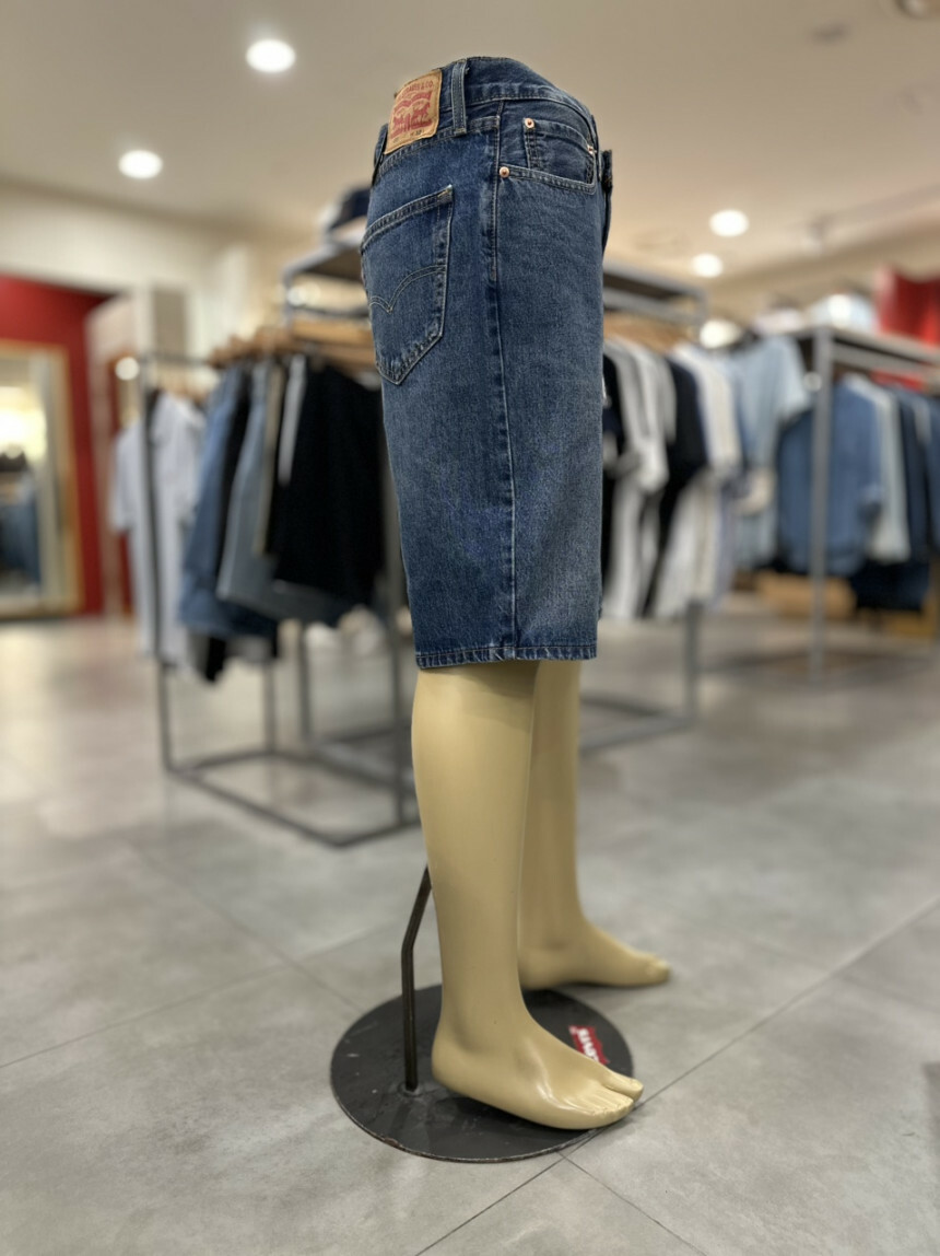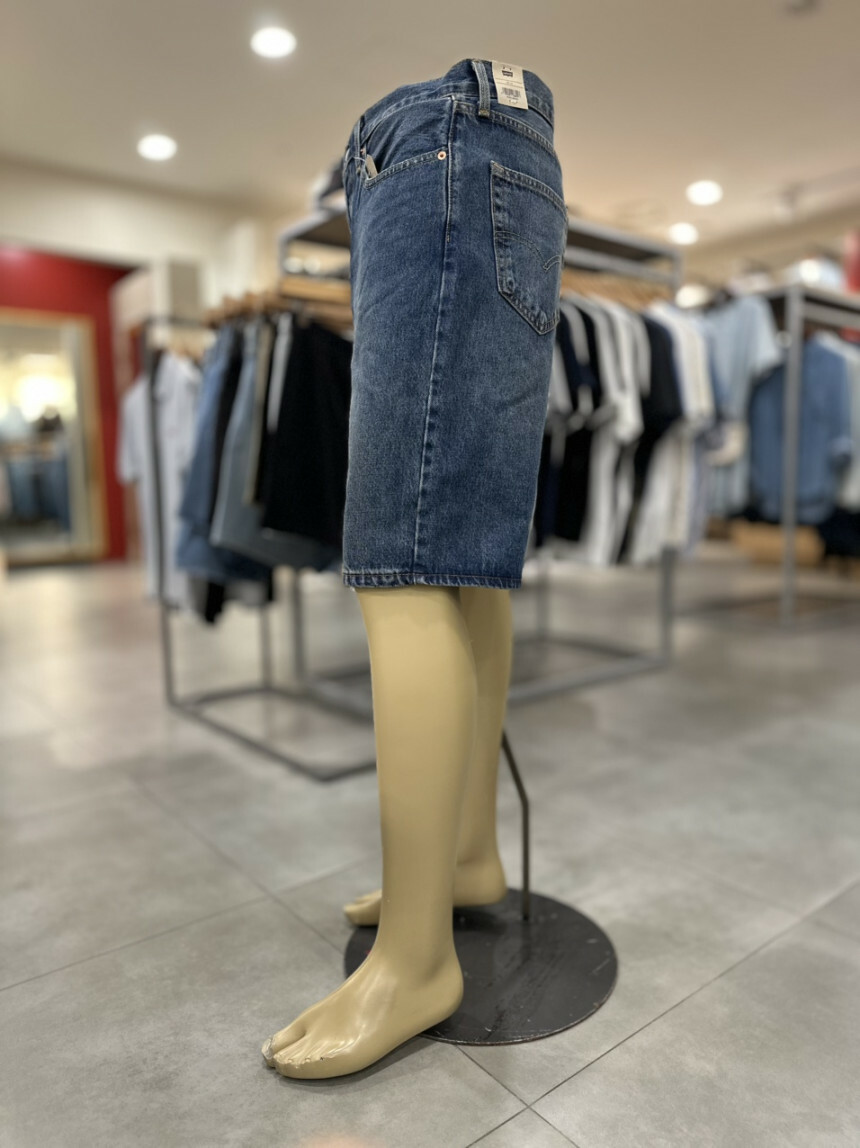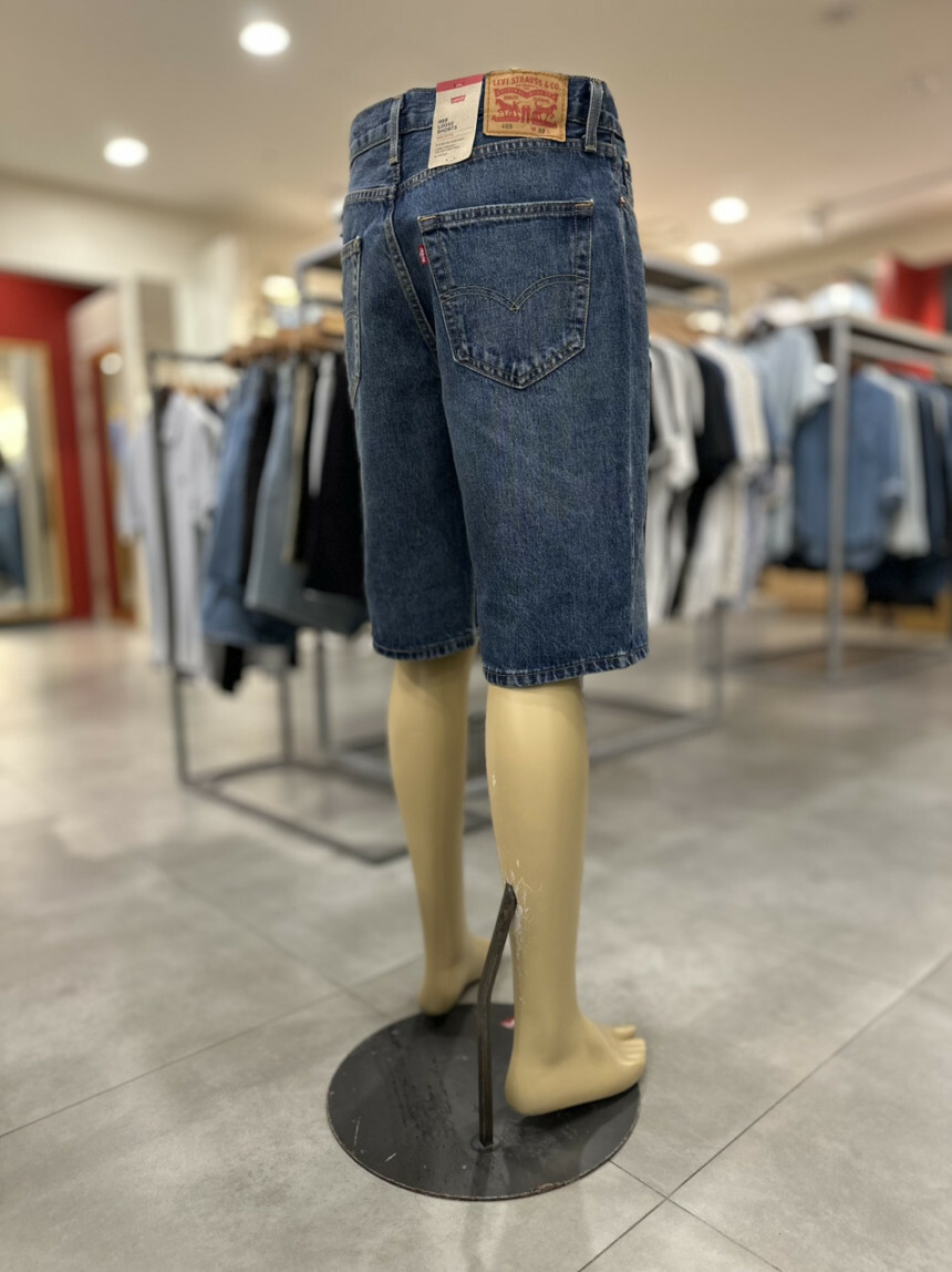 다크블루 컬러의 남성 루즈핏 데님 반바지입니다.