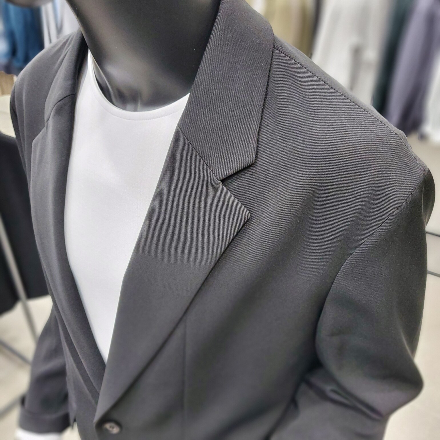 기본 다크블랙 색상톤의 오버핏 셋업 자켓입니다