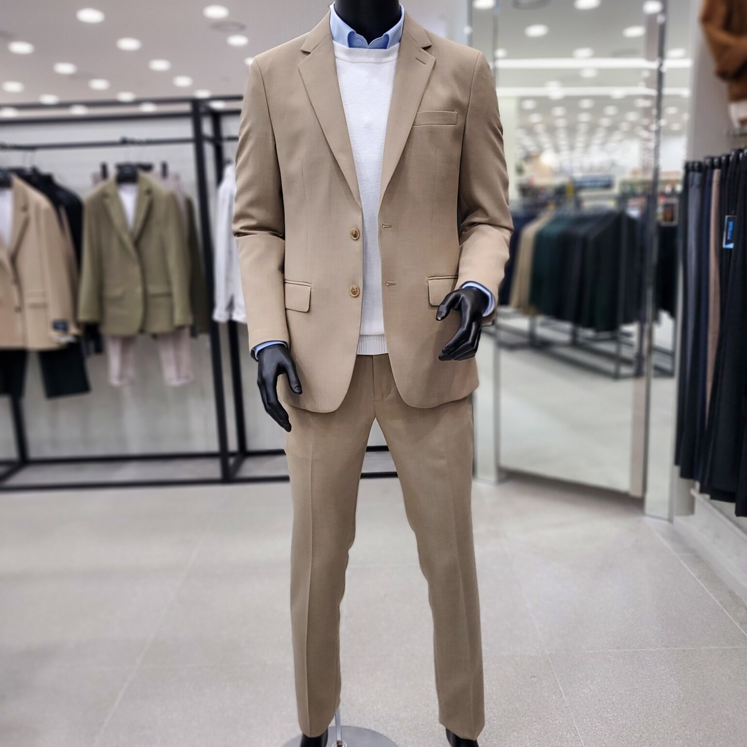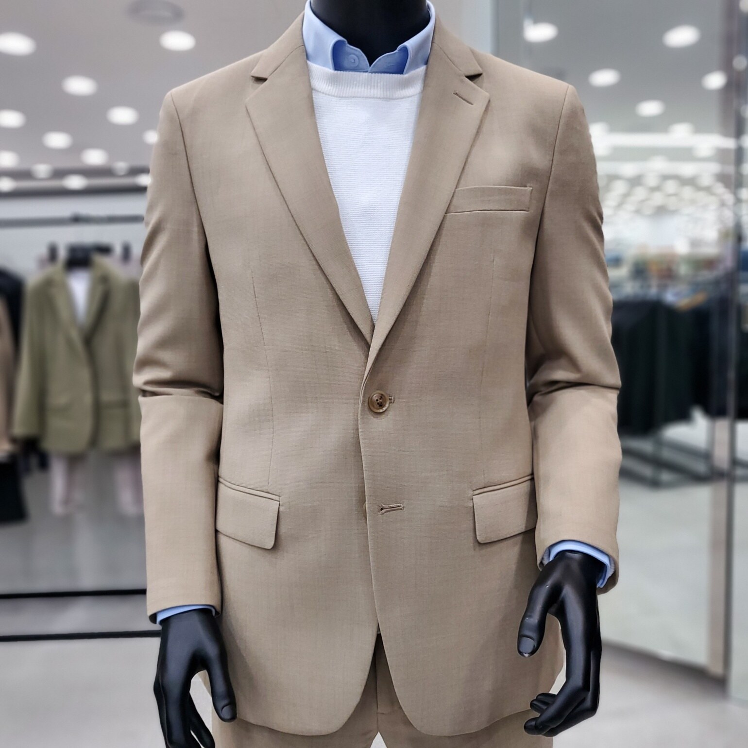 밝고 화사한 라이트한 베이지컬러 톤의 스트레치 셋업 콤비자켓 입니다