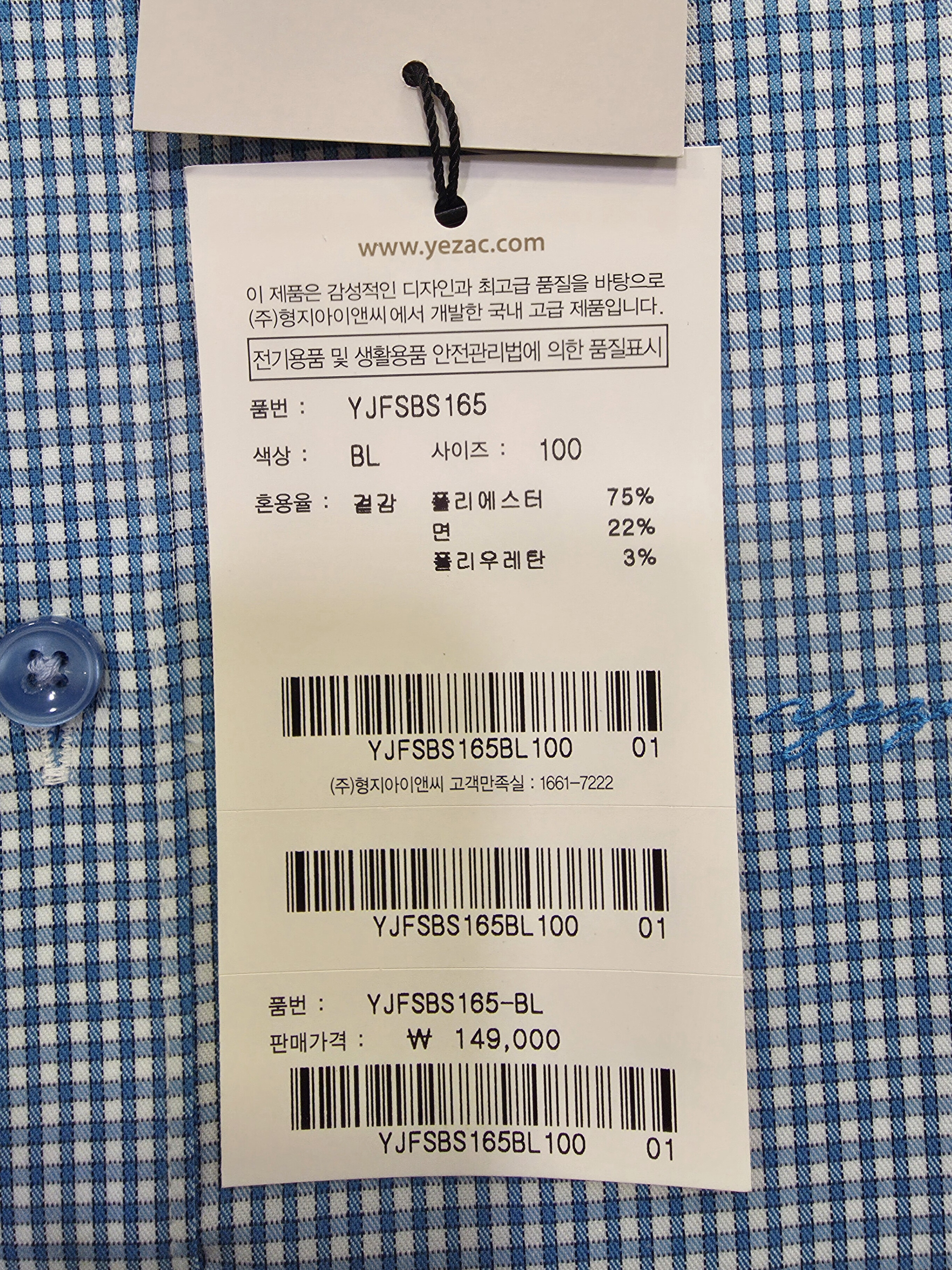 예작예작 면TC 스판 잔체크 슬림핏셔츠 YJFSBS165BL (P003737526)