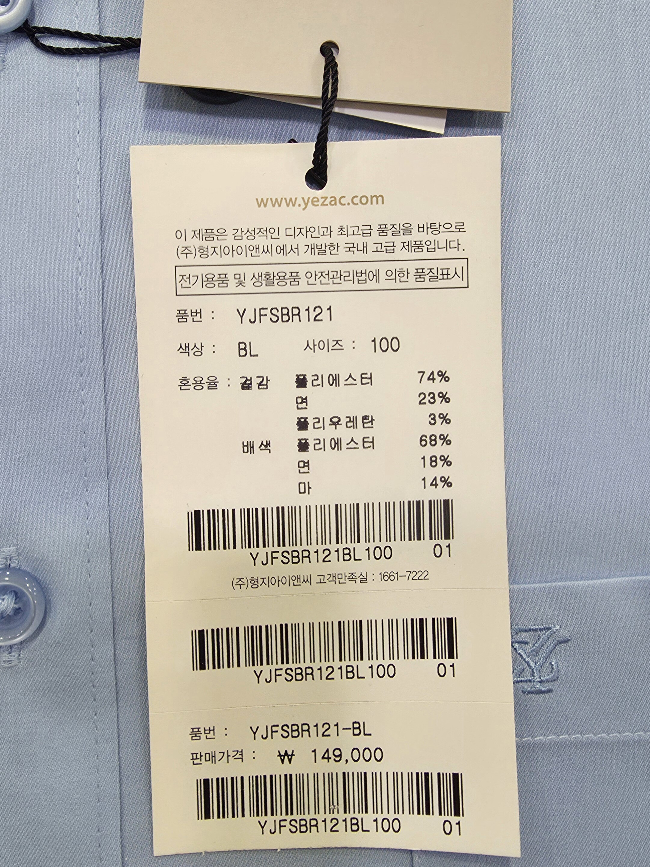 예작예작 면TC 스판 일반핏셔츠 YJFSBR121BL (P003737878)